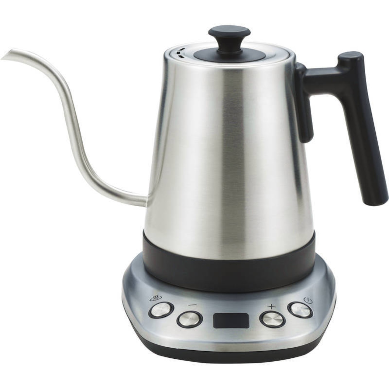飲み物の種類に合わせて5℃ずつの温度調整が可能。沸騰すると自動的に電源が切れます。衛生的なステンレス製。持ち手は熱くなりません。細く注げるドリップ式。コーヒーや、口径の小さい容器にも狙って注ぎやすい。・サーモスタット/蒸気感知式・温度感知式