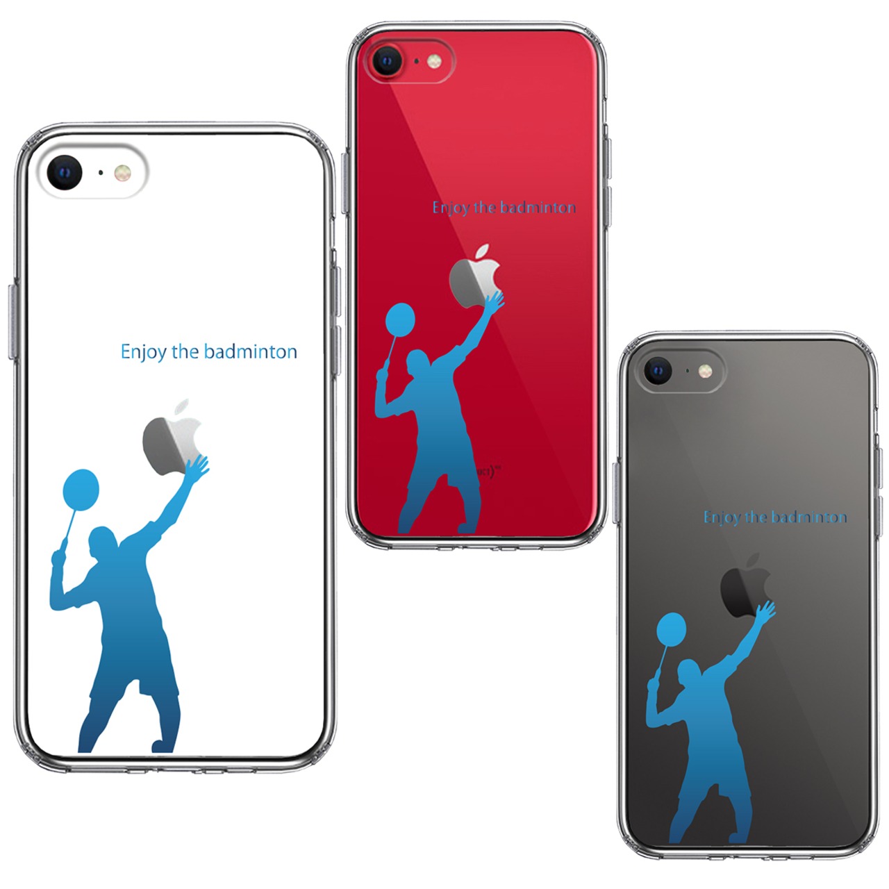 iPhoneSE(第3 第2世代) 側面ソフト 背面ハード ハイブリッド クリア ケース バドミントン ブルー