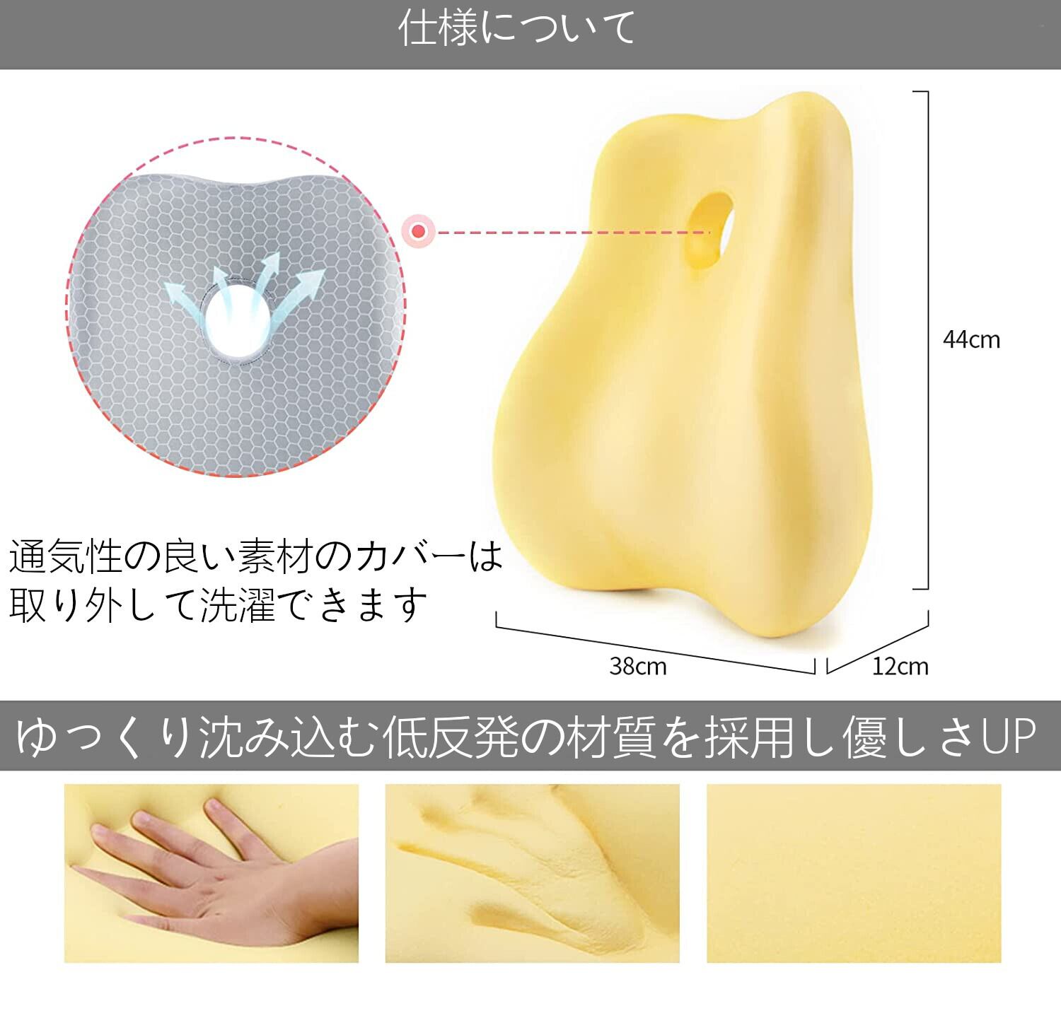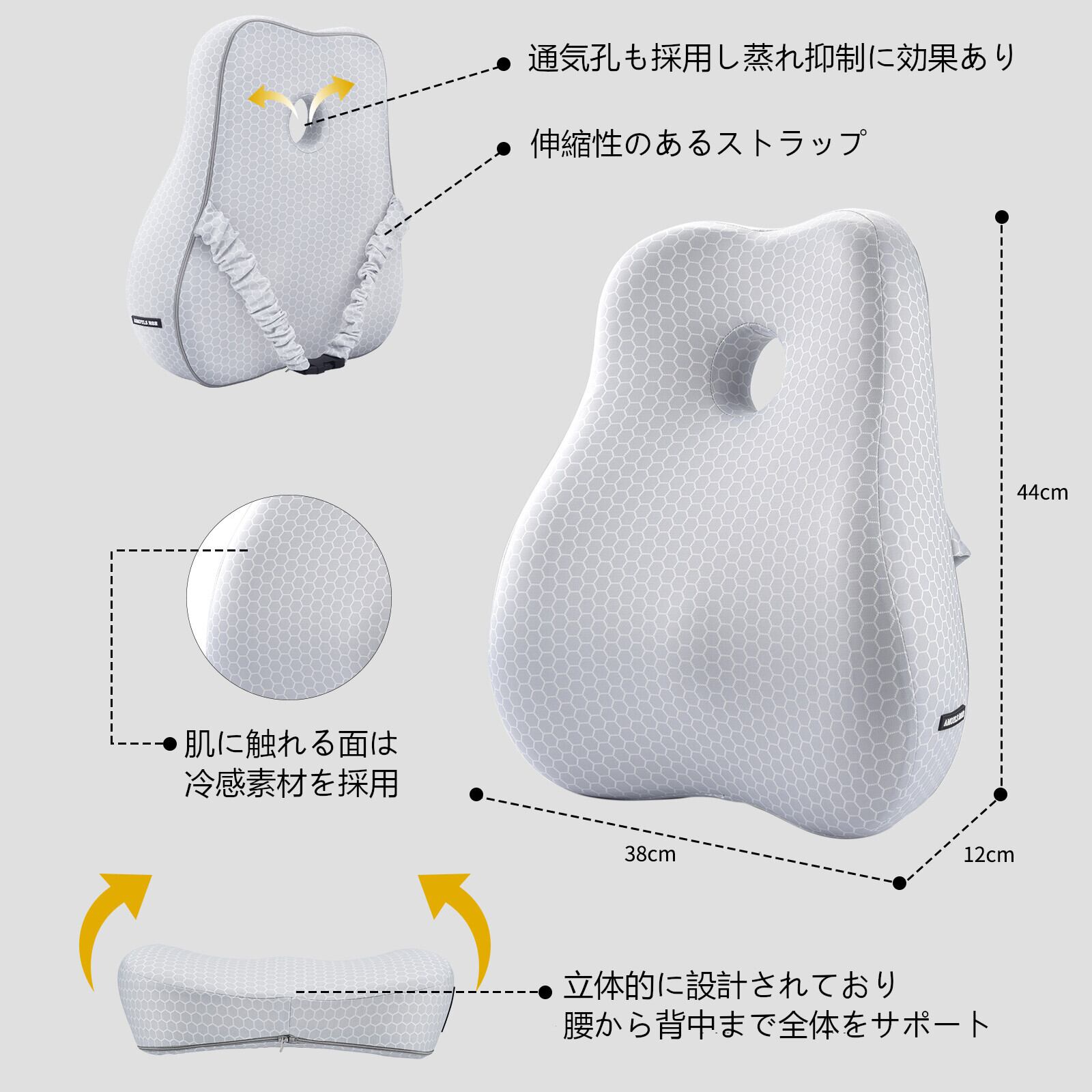 本製品は腰・背中を低反発クッションと人間工学に基づいた設計により、