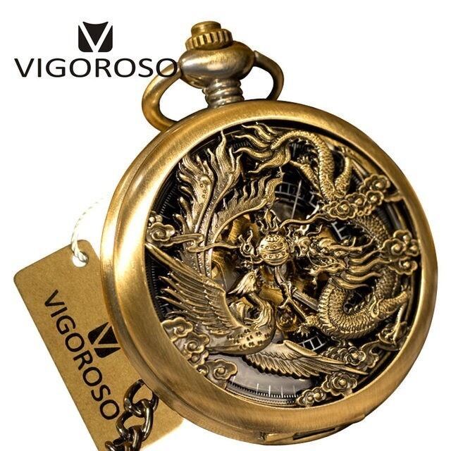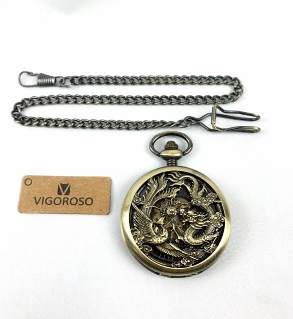 手巻き式 ムーブメント 懐中時計 ゴールデンドラゴン 4本爪 昇龍 ウォッチ(メンズ,腕時計,ドラゴンウォッチ)フェニックス 朱雀 鳳凰 不死鳥