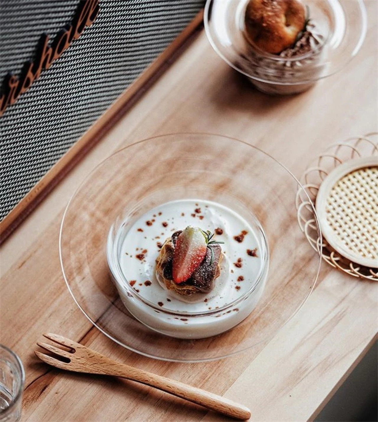 フルーツプレート 耐熱ガラス フレンチ 大人気 小さい新鮮な 写真小道具 カッププレート クリア