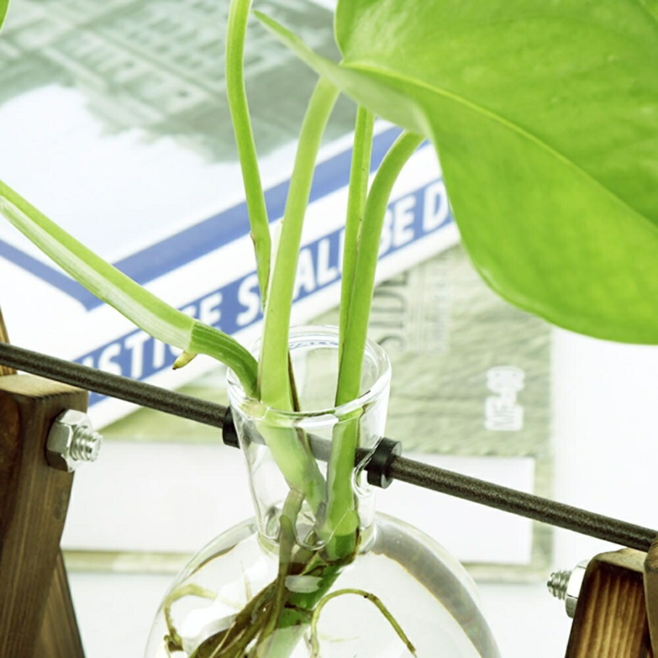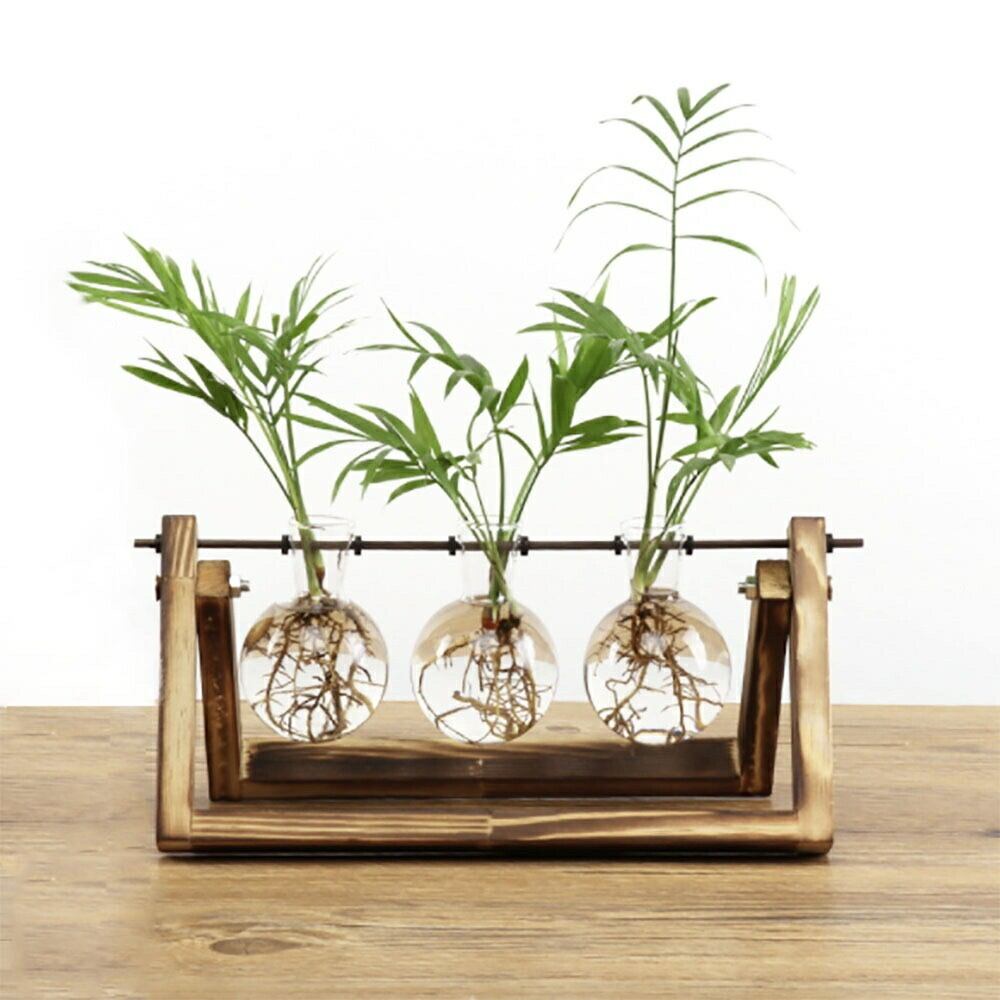 花瓶 フラスコ型 透明 ガラス 木製 クリア 水耕栽培 花器