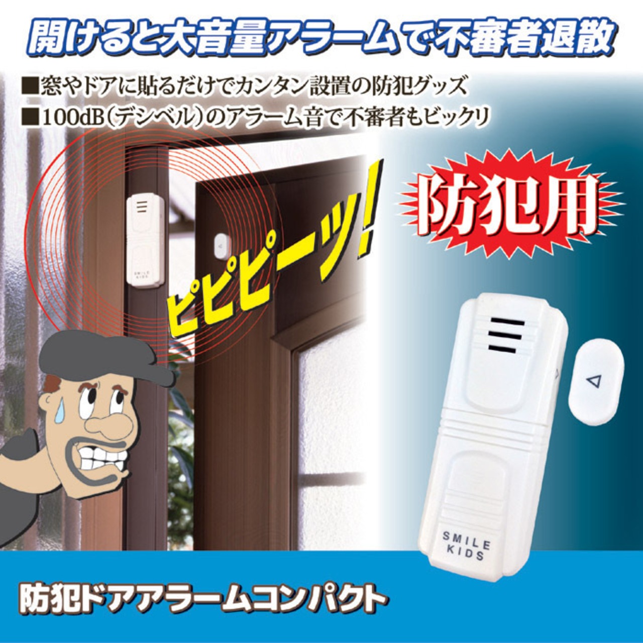 空巣が狙う侵入手口として多いのが、窓や勝手口などからの侵入です。本製品は、窓やドアが開くと同時に大音量のアラームが鳴り響き、侵入者を威嚇します。設置はカンタンで、本体とセンサーを貼り付けるだけ。自宅に居る時には、OFFにできるスイッチ付き。アラーム音は100デシベルの大音量で、作動すると約30分間鳴り続けます。乾電池式なので面倒な配線は不要。窓やドア、引き戸に設置可能です。