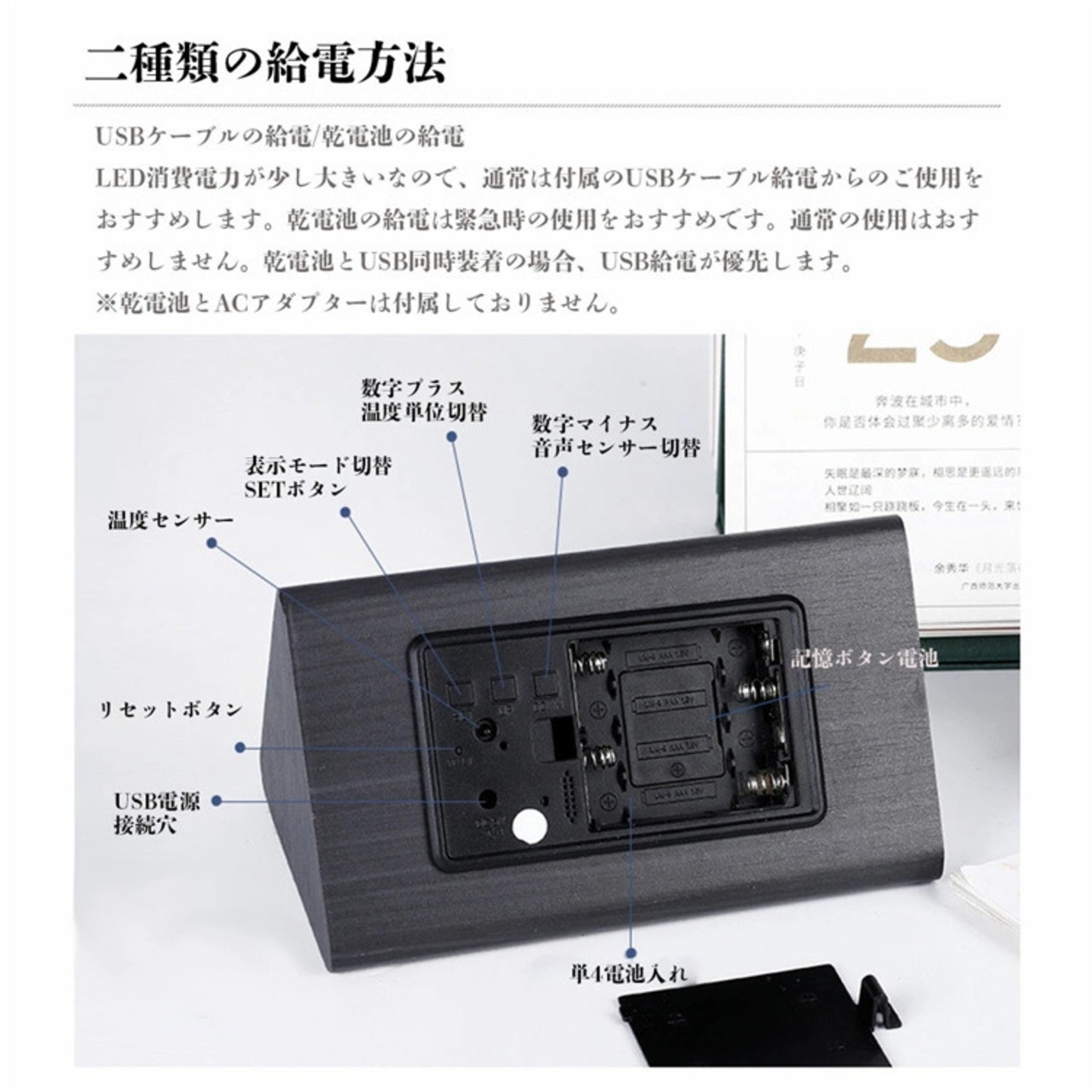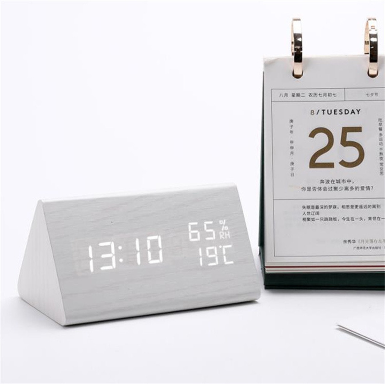 木時計 木製 デジタル目覚まし時計 湿度時計 LED 時計 三角形 電子時計 温度計 夜光 三段輝度 トレンド