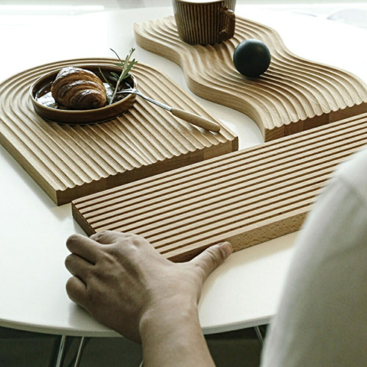 トレイ トレー お盆 木製 波形 波型 ウッドトレイ 板 まな板 北欧風