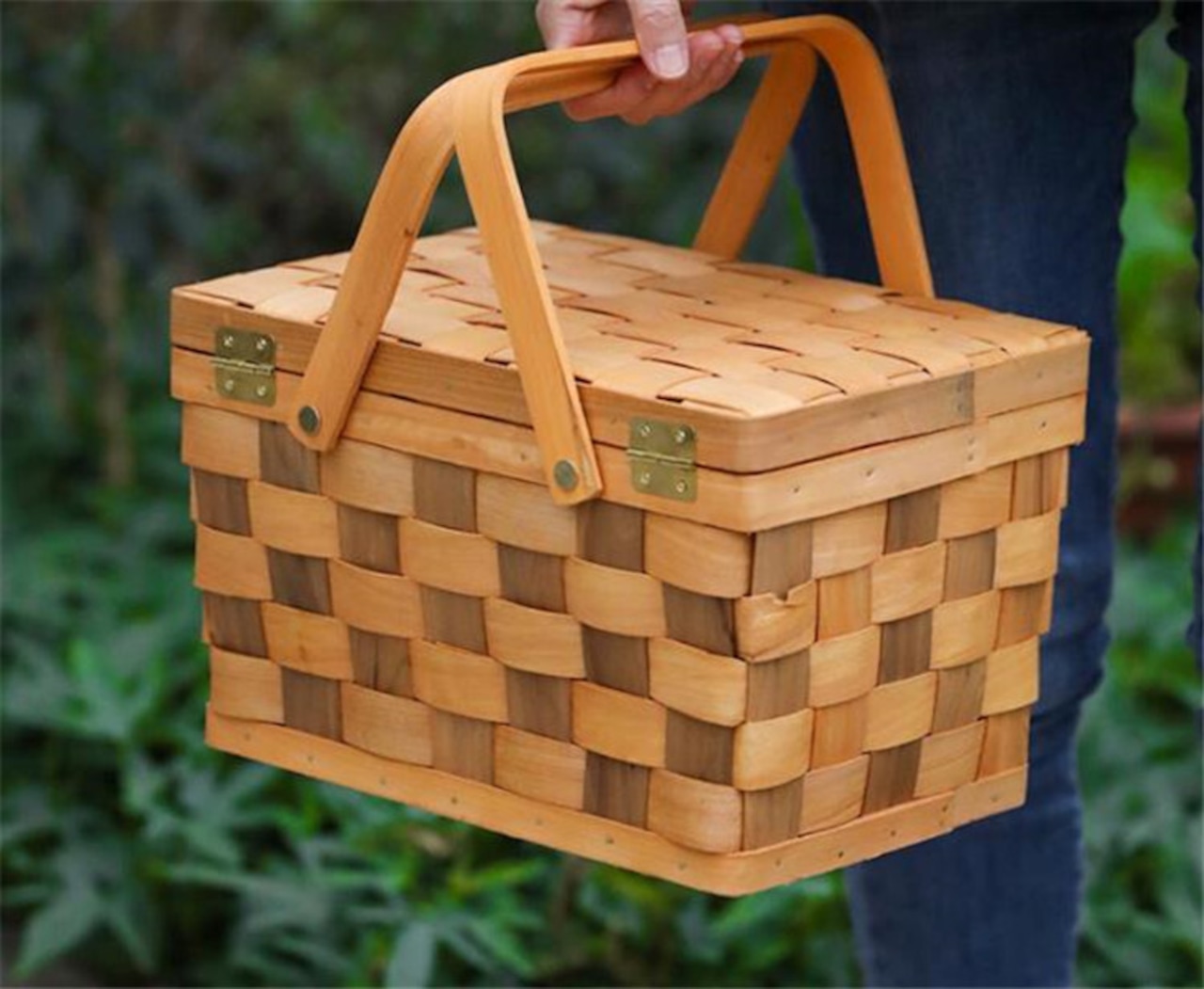 木製 キャリーバスケット ポータブル 買い物かご 大人気 ピクニックバスケット