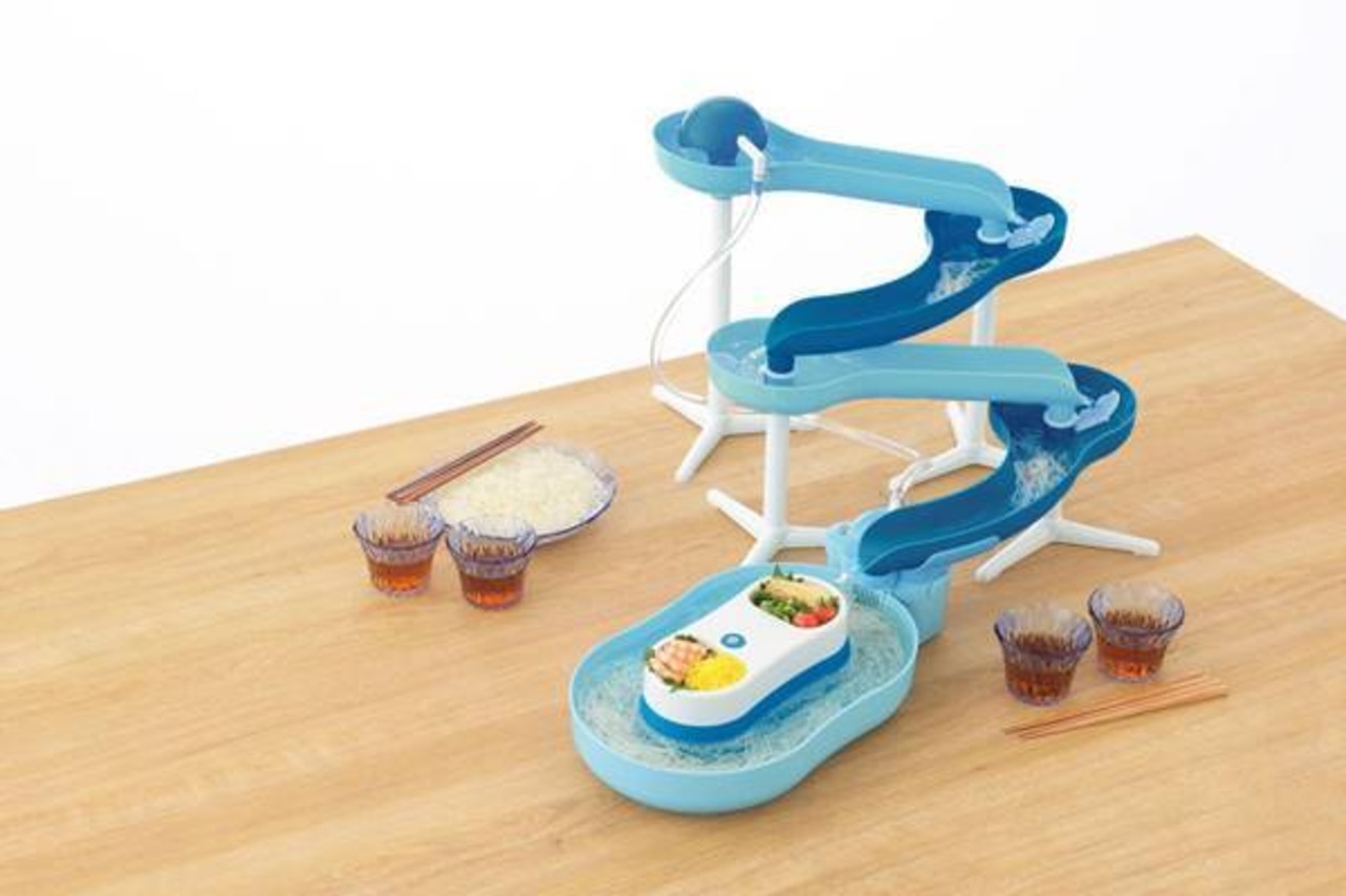 食卓のスペースに合わせてスライダーの形を調整できるスライダーそうめん流し器です。