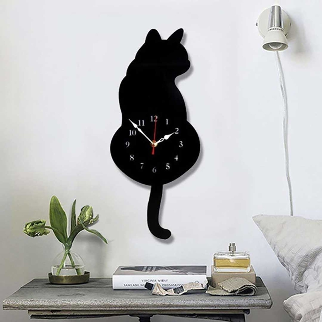 壁掛け時計 猫 尻尾 ふりふり 振り子時計 ブラックorホワイト インテリア 贈り物