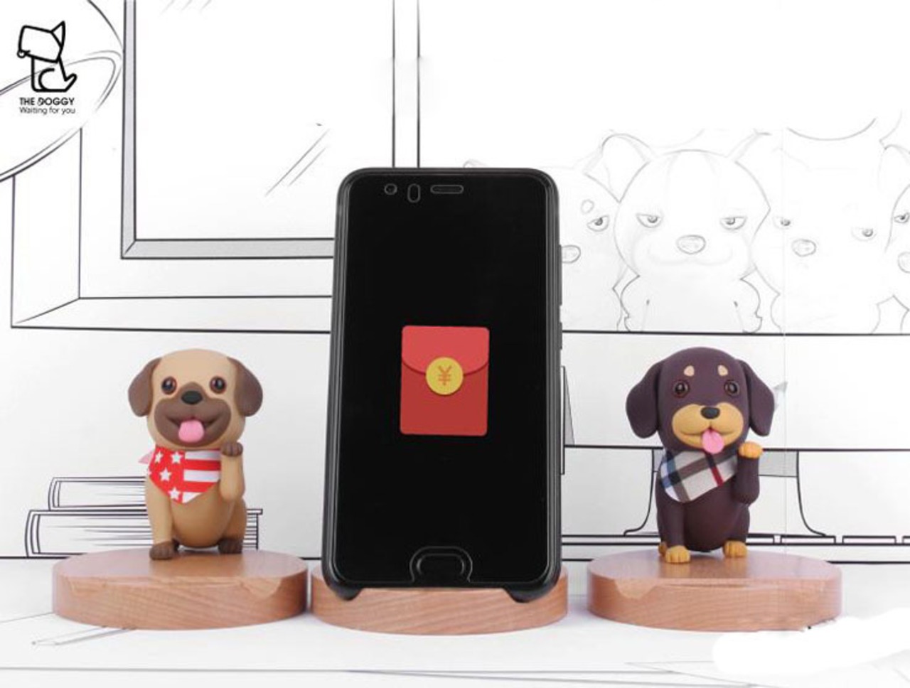 スマホスタンド スマホ置き 木製 縦横対応 可愛い犬 スマホホルダー 装飾品