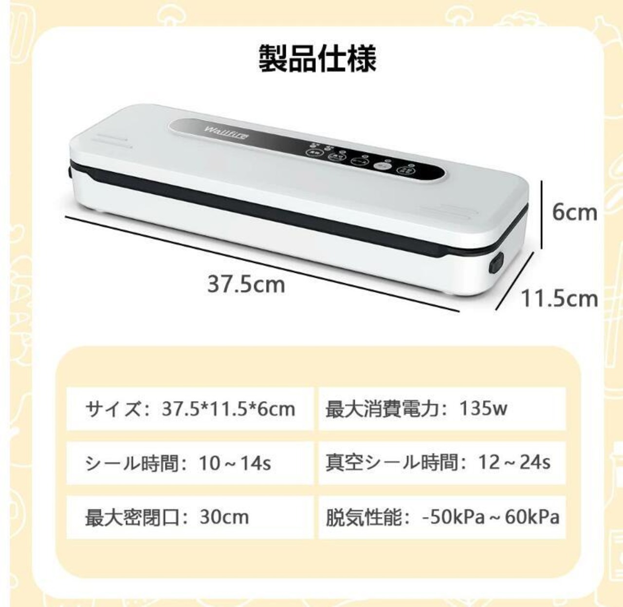 真空パック器はワンタッチで自動的に迅速に空気を排除して真空の状態になり、自動にシールします。ライトの状態によって作業の運行が把握できます。また、手動機能も設置されております。適度な吸引で止めれば内容物を潰さずに綺麗に真空パックすることができ、お好みな真空度に達します。低ノイズ、真空調理に適用します。