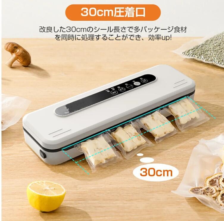 強力な真空ポンプを付属しており、60kPa強吸引力があり、30秒くらい脱気完了できます。低ノイズで、しっかりと真空バック内の空気を抜き出せ、高真空を保証します。また、3Dの優れた吸引テクノロジー、30cm延長真空とシールをより効率的にする加熱バー、一層効率的な操作が実現できます。