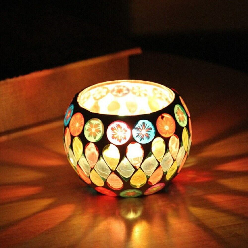 ステンドグラスを思わせるようなとっても素敵なキャンドルホルダーです
