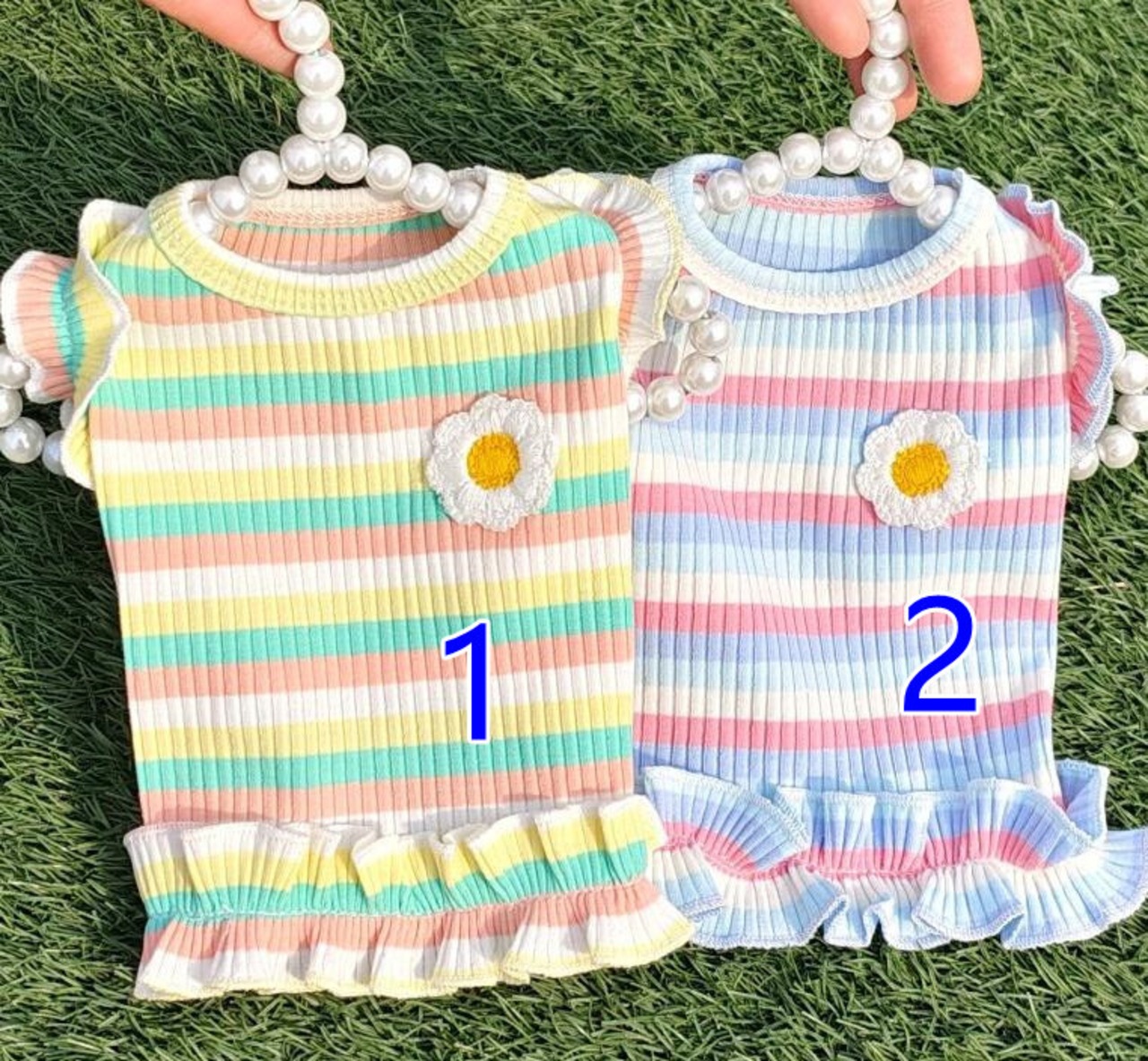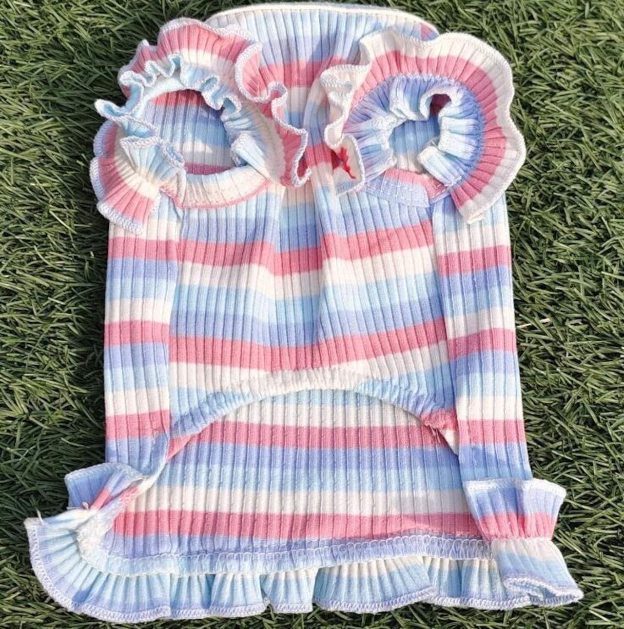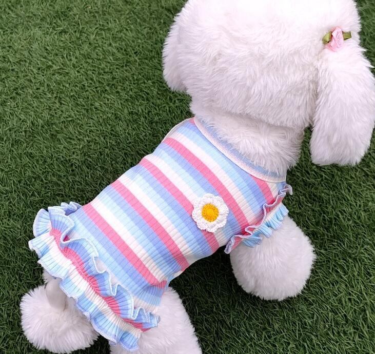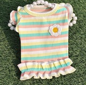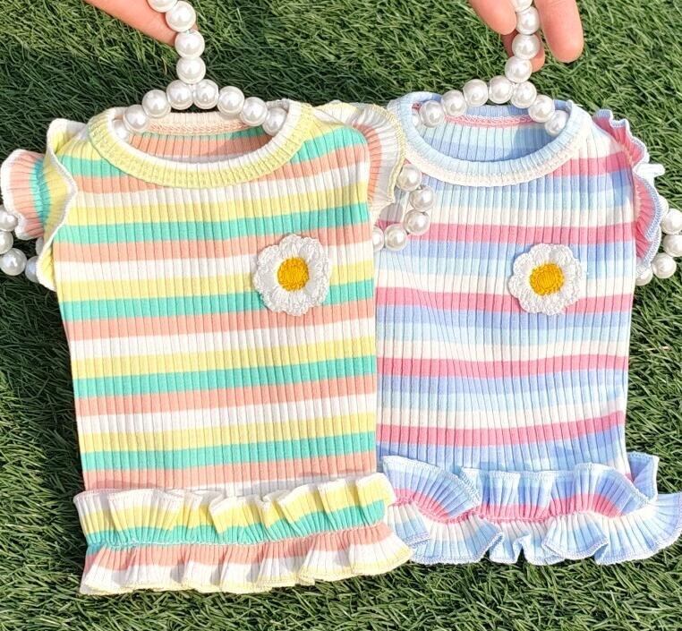 【春夏新作】小型犬服★超可愛いペット服ボーダー柄お花のワンポイント