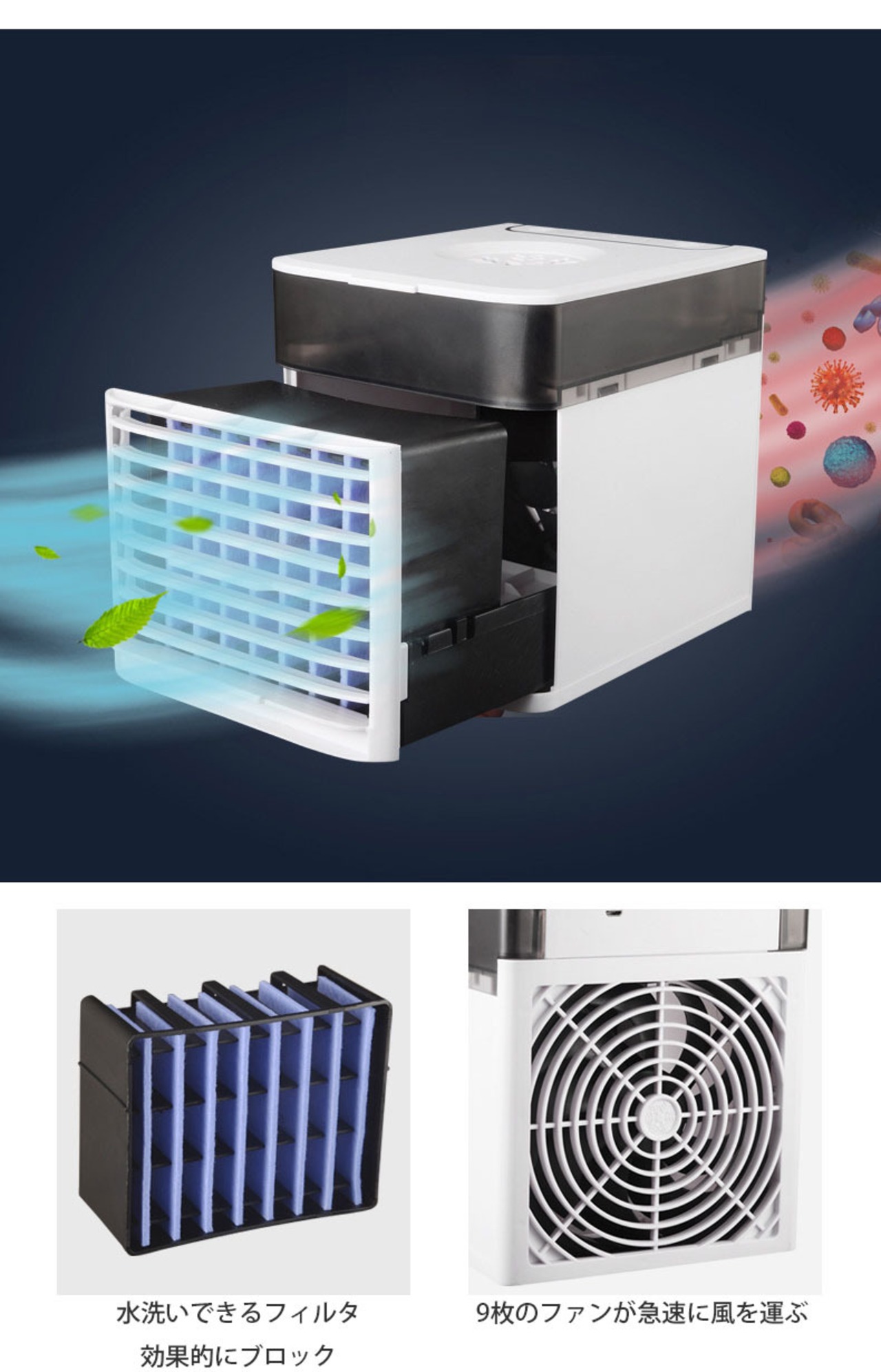 【フィルター】水洗い可能。ほこりやバクテリアをブロックし、空気を清潔に保ちます。