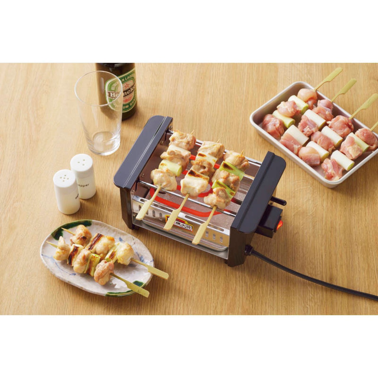 電気ヒーターでじっくり焼くので、失敗なく美味しく焼けます。調理済みの焼鳥はもちろん、生肉からでも本格的な美味しい焼鳥が楽しめます。ガスコンロの直火と違い、串が焦げることがなくじっくりと丁寧に焼き上げます。