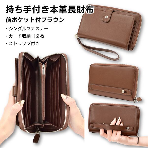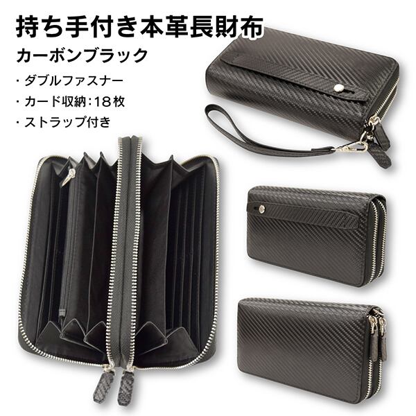 持ち手付き長財布 Wファスナー カード18枚収納 ストラップ付き 牛革 合皮 男女兼用