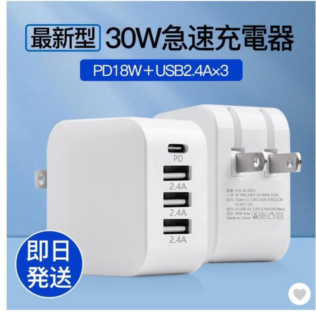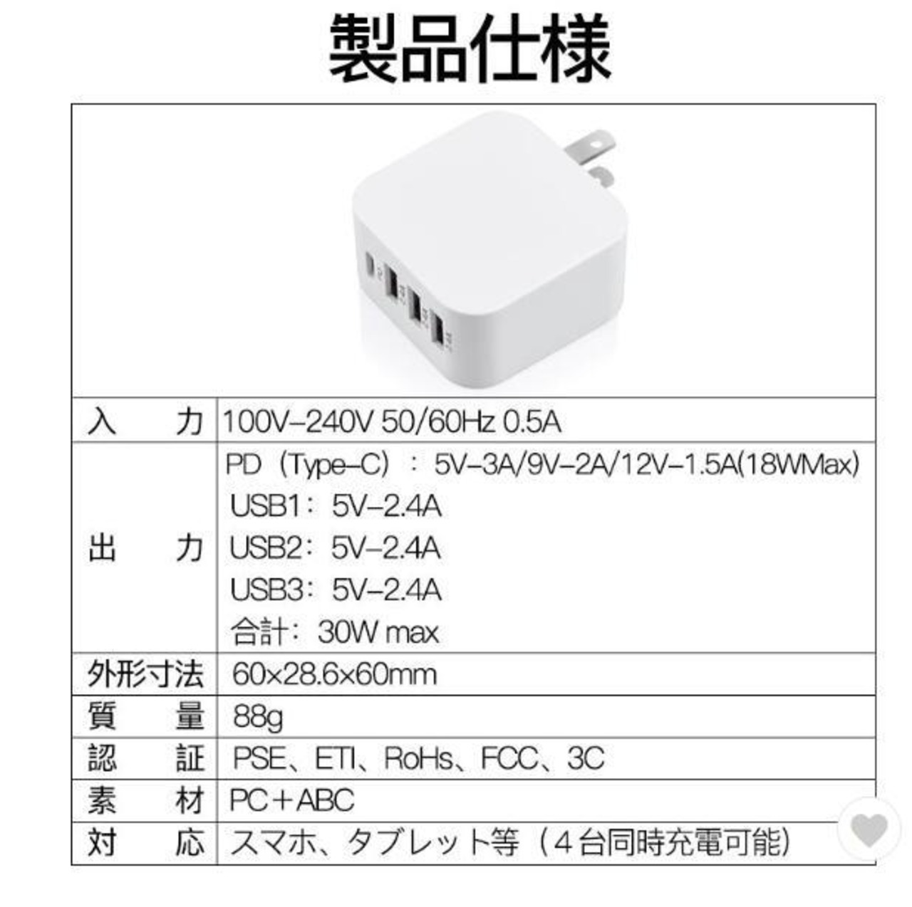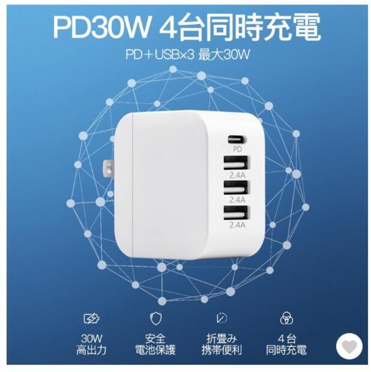 PD 30W 充電器 4ポート AC アダプター USB タイプc Type-C 急速 4口 スマホ iPhone 14 13 iPad タブレット