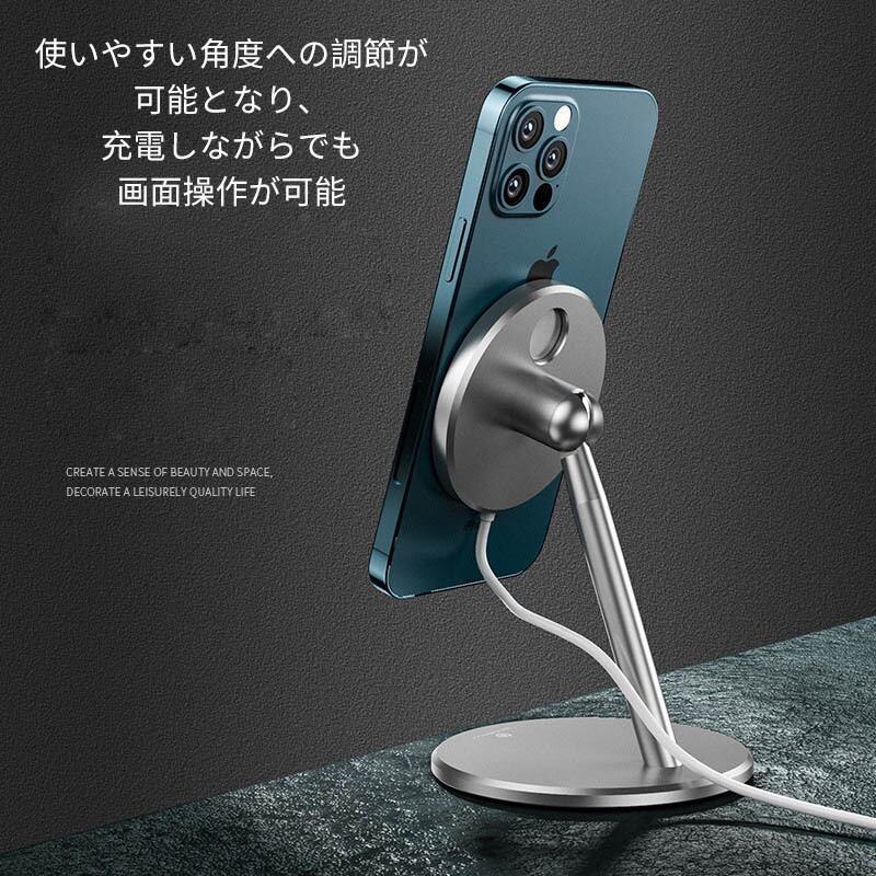 スマホスタンド スマホ置き アルミ合金製 卓上スタンド 角度調節機能付き iPhone12シリーズ MagSafe用