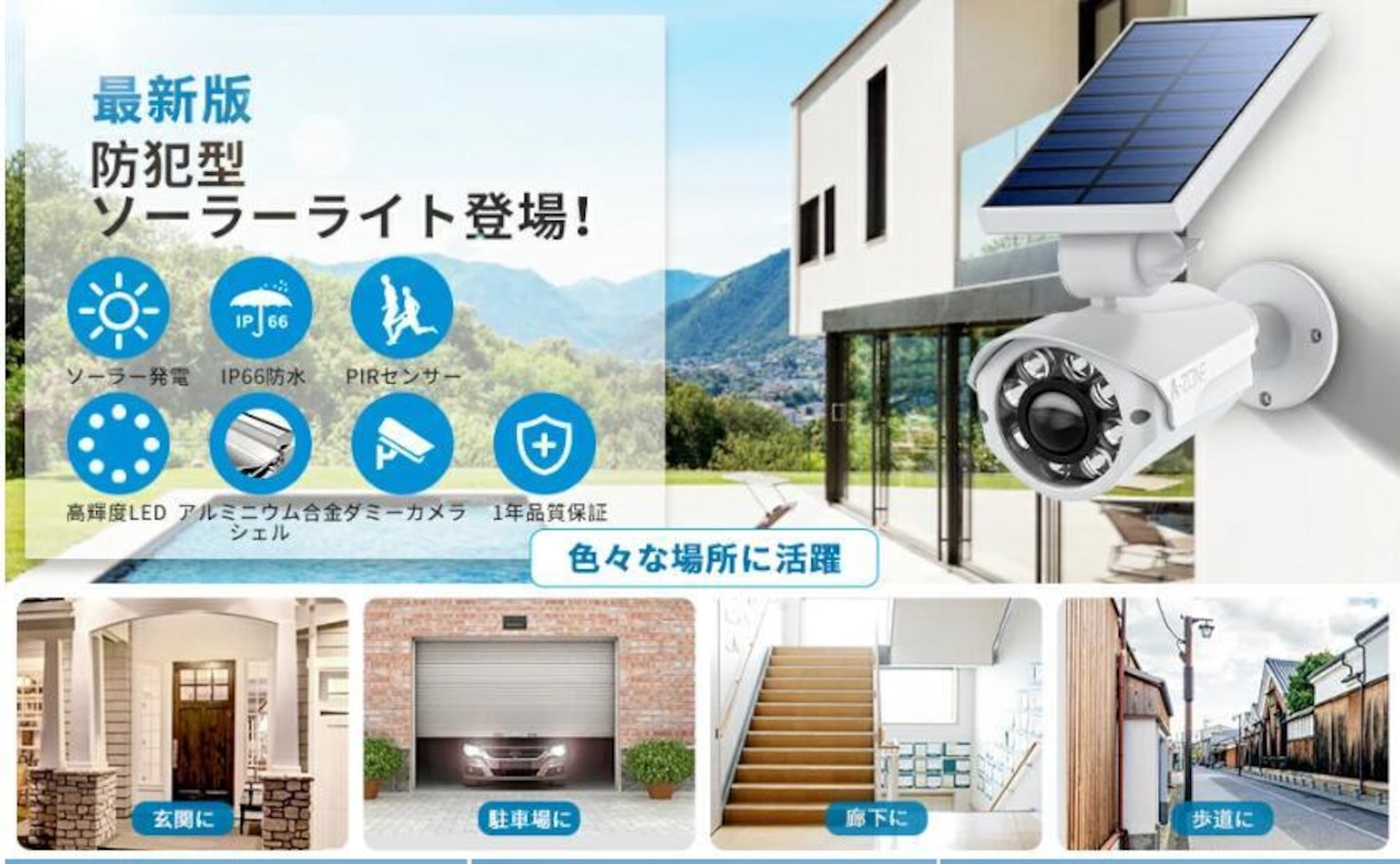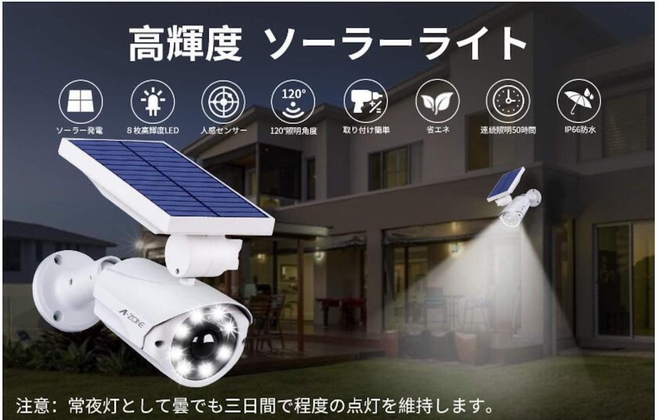 人感 センサーライト 屋外 ソーラー 赤いランプ付き 自動夜間点灯 防犯ライト 防犯カメラ型