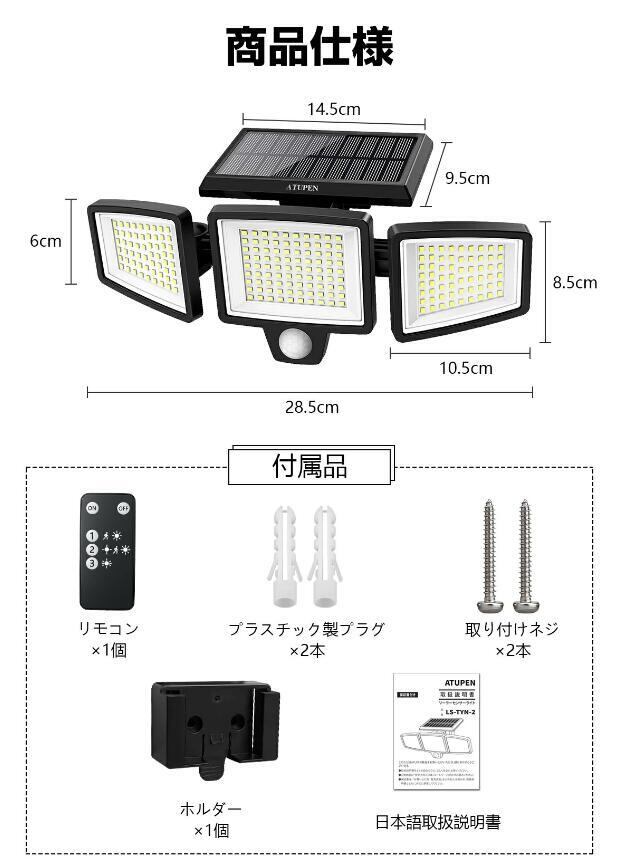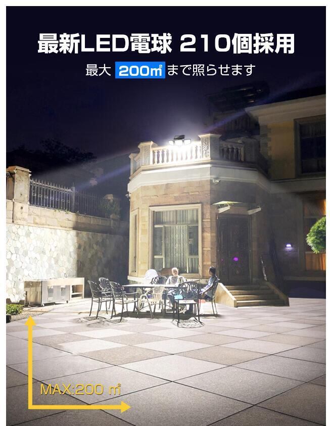 ソーラーライト屋外 防水 センサーライト ソーラー 210LED ガーデンライト ソーラー ライト