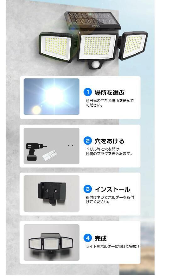 ★【省エネ・電気代不要】ソーラー充電なので、昼間に自動充電し、夜間に自動点灯します。エネルギー転換率は20%に達し、電気代不要だけではなく、二酸化炭素の排出量もゼロであるエネルギーで環境に優しいです!完璧な停電対策、地震や台風などの災害で万一停電しても照明機能を保ち、防犯や避難などに貢献します。