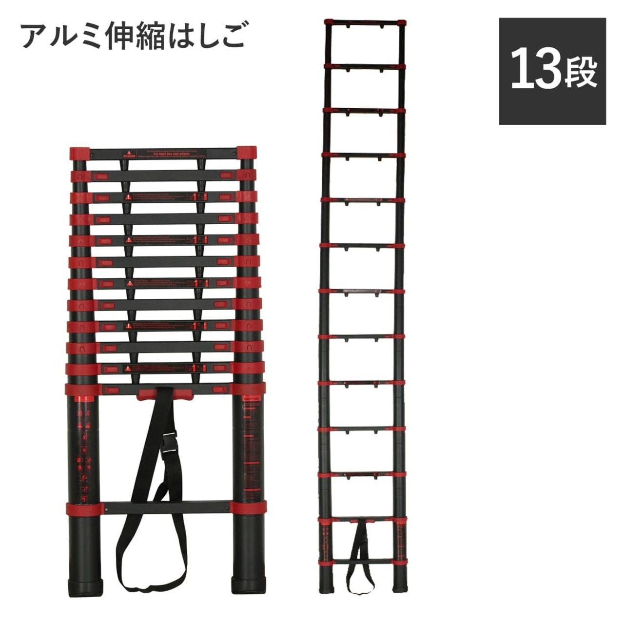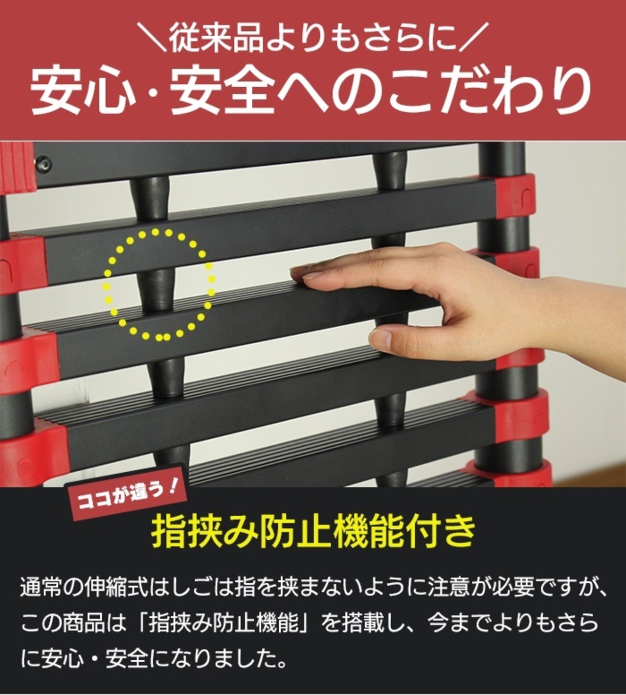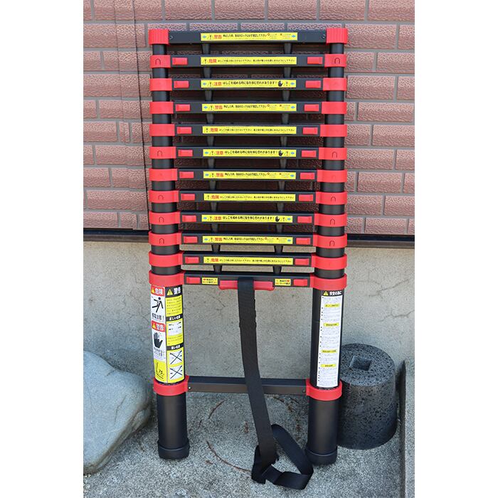 アルミ製の為、普通の伸縮はしごよりも軽量性にすぐれており、女性でも扱いやすい重さのおしゃれなブラック×レッドのカラー。