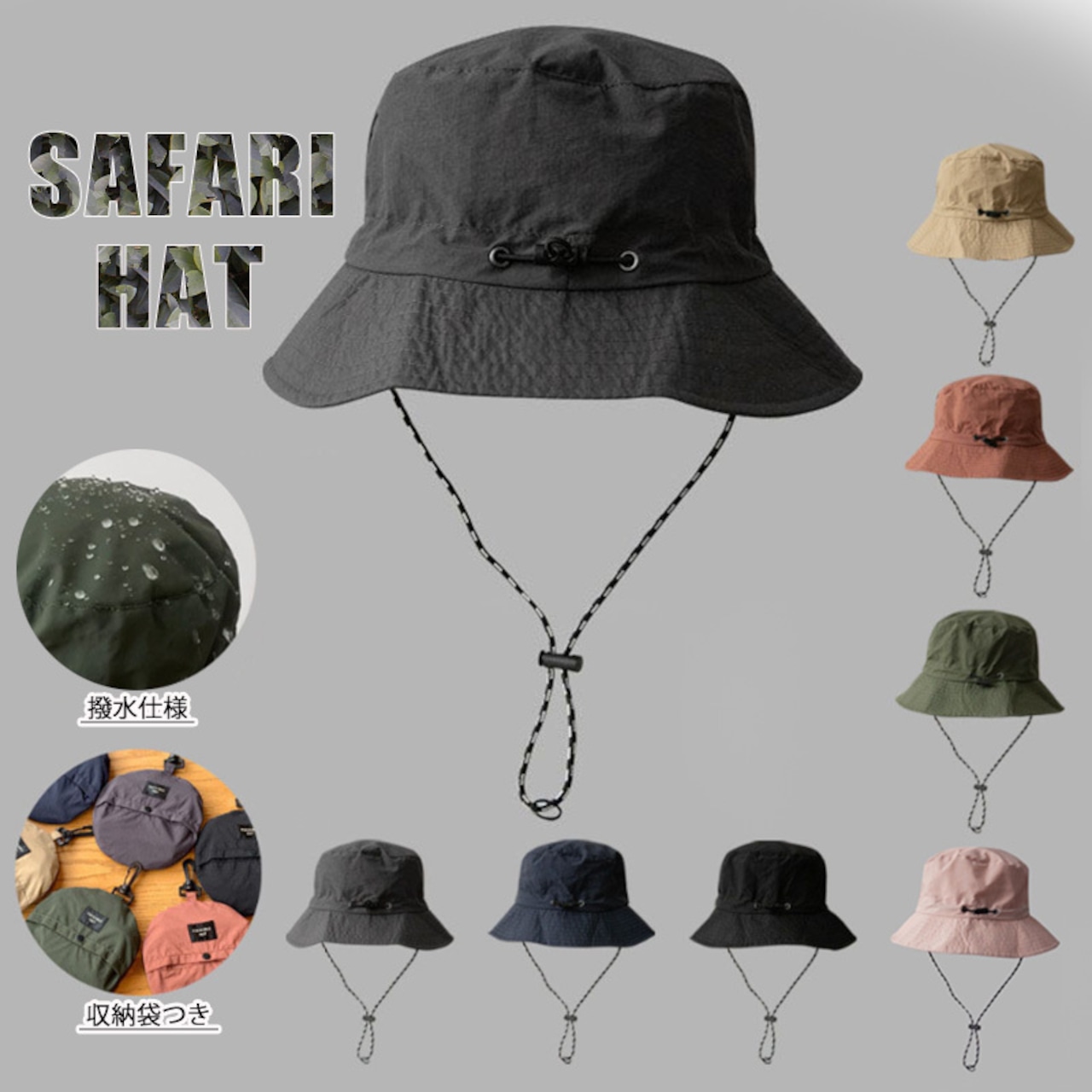 サファリハット アウトドア キャンプ 山登り 帽子 紫外線対策 あごヒモ 撥水 春夏秋冬 旅行 カジュアル