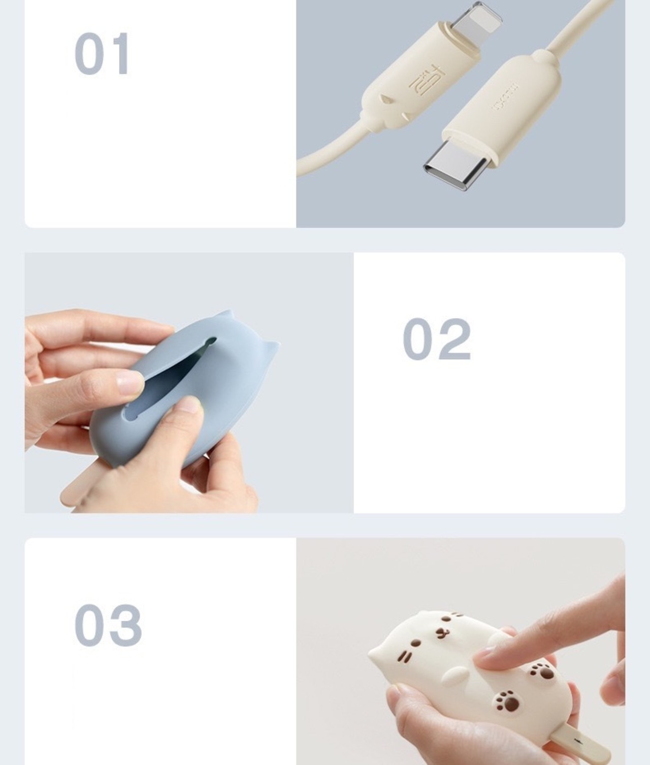 シンプル可愛い、ねこシェイプ充電・転送ケーブル。