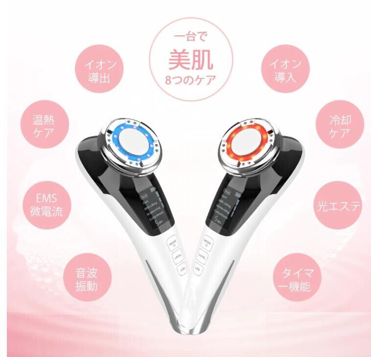 温冷美顔器 目元ケア 温熱振動 イオン導入 毛穴ケア 美肌 小顔 保湿 フェイスケア 1台8役 美顔器 ems