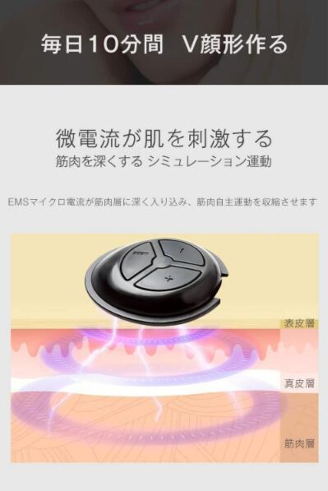 リラックスモード:リラックスする咬筋、V顔マッサージ;アップモード:ems微電流技術によりひっぱり締める,しわ防止、垂れ防止,スマートモード(総合モード):むくみ応急、引き締めしわ;ご注意:スマートモード時のみ振動します。リラックスモードとリフトアップモードでは振動しません。リラックスモードとリフトアップモードはEMS微電流原理を導入して、筋肉を刺激し、自動的に筋肉の収縮運動を行います。
