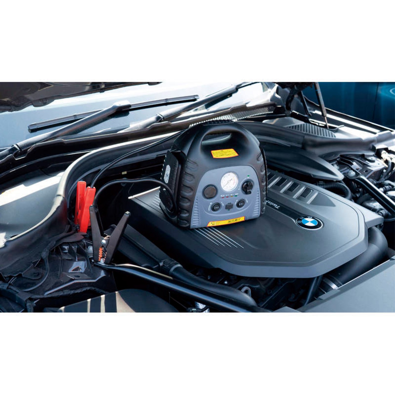 車のトラブルはこれ一台で解決!アウトドアでも活躍!・バッテリー上がりの時のガソリンエンジン始動支援(4000cc迄)・コンプレッサー装着により車・バイクなどの空気入れができます。・LEDライト付・USB出力端子付でスマホの充電もできます。・シガーソケットを装着しているので、12V仕様の電化製品が使えます。