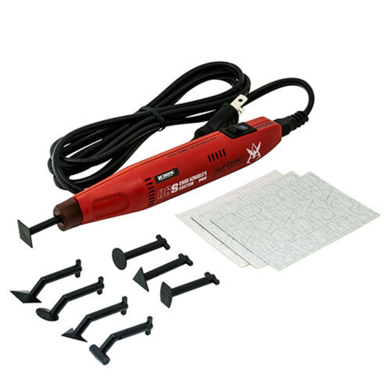 先端に取り付けたヤスリを高速振動させる電動工具で、プラモデルや模型制作のクオリティアップに