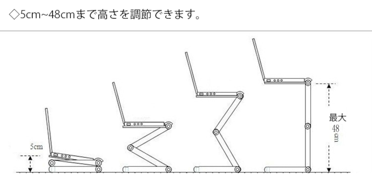 [1]折り畳み[2]角度[3]高さが最大48cmまで調節ができるノートPCスタンドです。