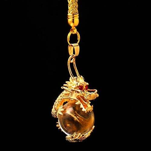 水晶龍の黄金ストラップ<黄金龍お守り付き>