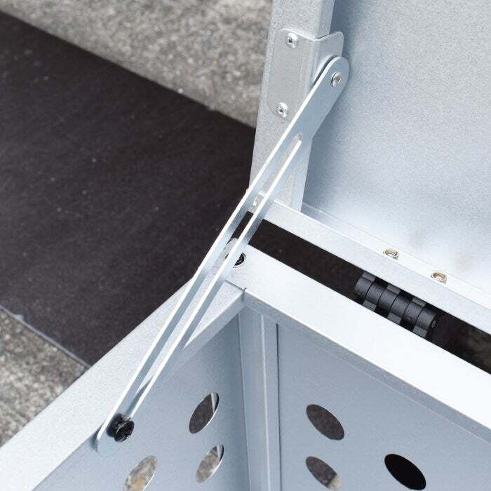 ダストボックスDST-700は、45Lのごみ袋が約5袋入る、丈夫で錆びに強いガルバニウム製です。 錆に強いガルバニウム製で、非常に長くご使用頂ける業務用/家庭用大型ごみ箱です。 間口が広く、フタには開閉ストッパーがついていますので、ゴミの出し入れが楽に行えます。 所要時間約20分!ドライバー1本での組立が可能です。