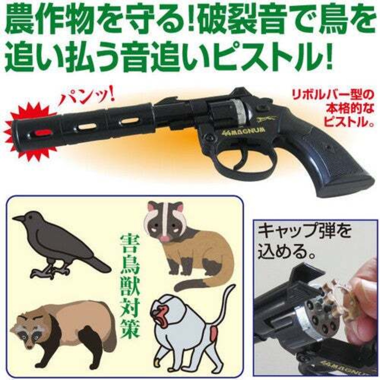 農作物を守る!破裂音で鳥を追い払う音追いピストル!