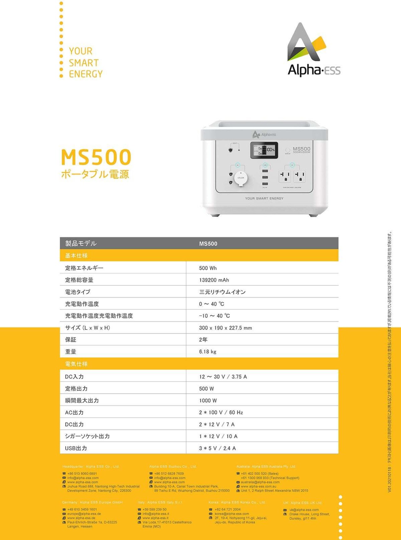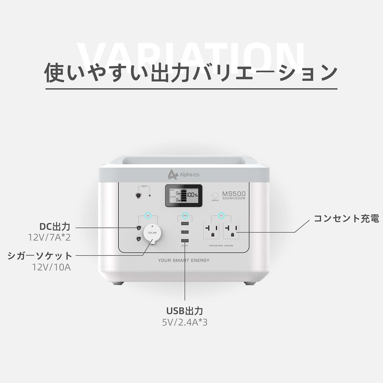 【防災推奨品マーク取得&LCD画面表示&長寿命】一般社団法人防災安全協会防災製品等推奨品審査会より、災害時の「必要性」「安全性」「機能性」「利便性」の観点から、Alpha ESSのポータブル電源500Wh(MS500)を災害時に有用かつ、安全であると認定されました。充放電サイクル1,000回後も初期容量の80%以上を維持できます。分かりやくいLCDディスプレイが装備され、バッテリー残量、現在出力入力電力が表示されユーザー体験抜群です。一回フル充電したら半年後も86%キープ、緊急時でもすぐ使えるようになります。