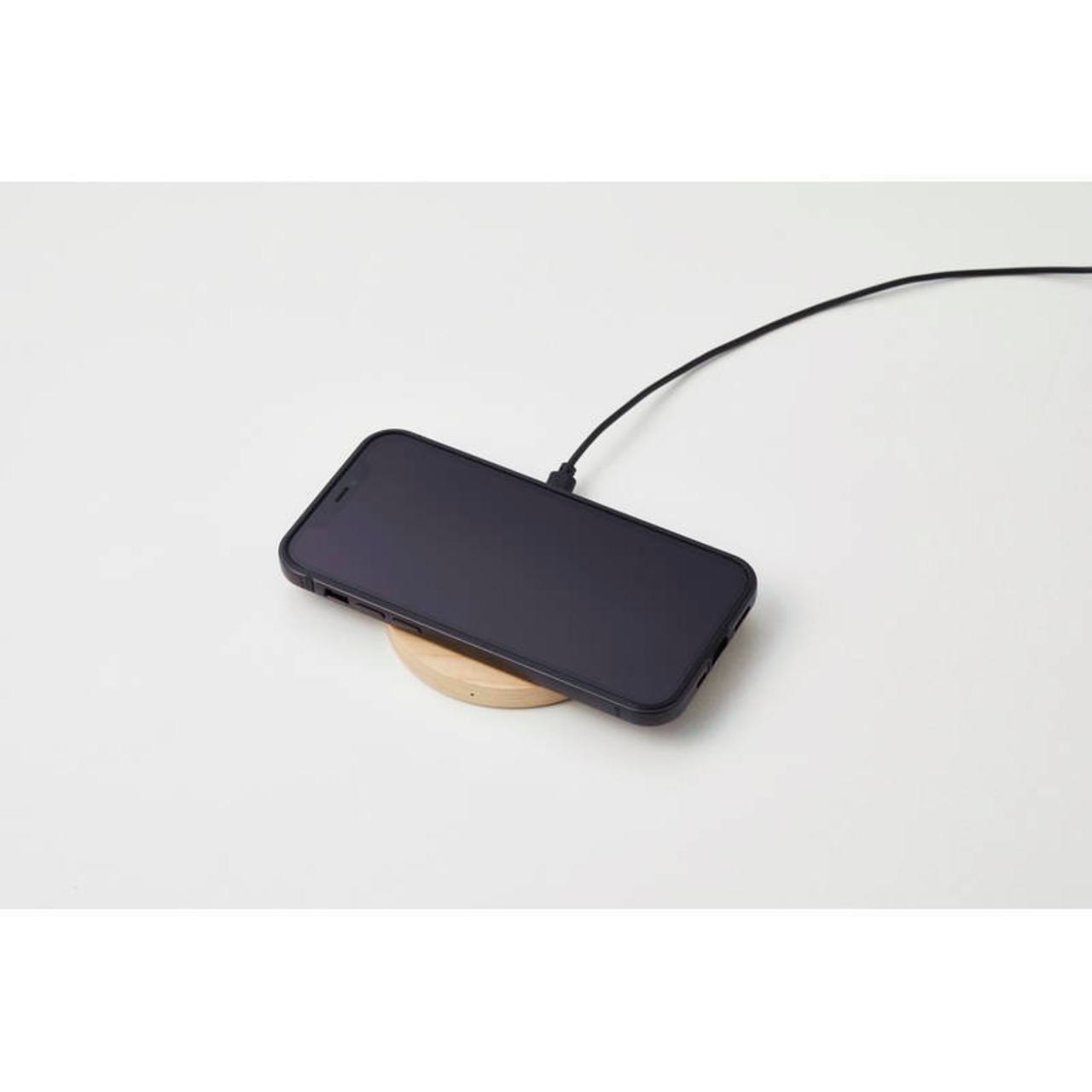 天然木を用いたワイヤレスチャージャー。※Qi対応スマートフォンのみ。