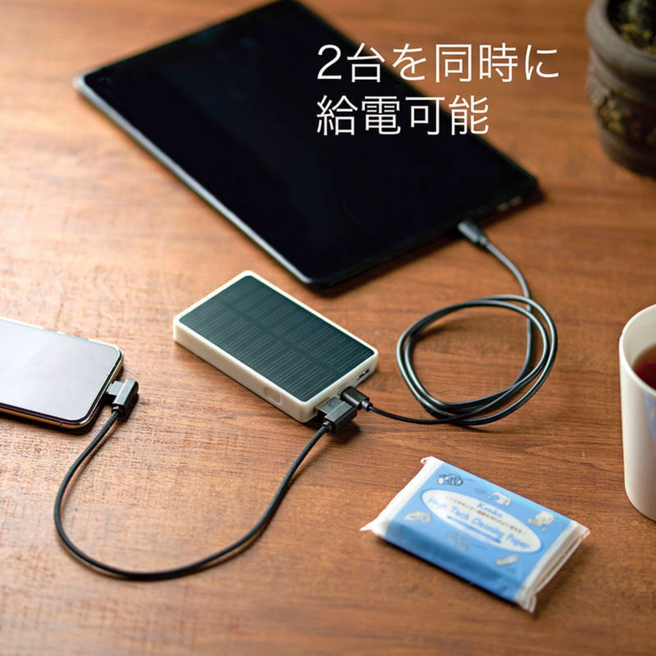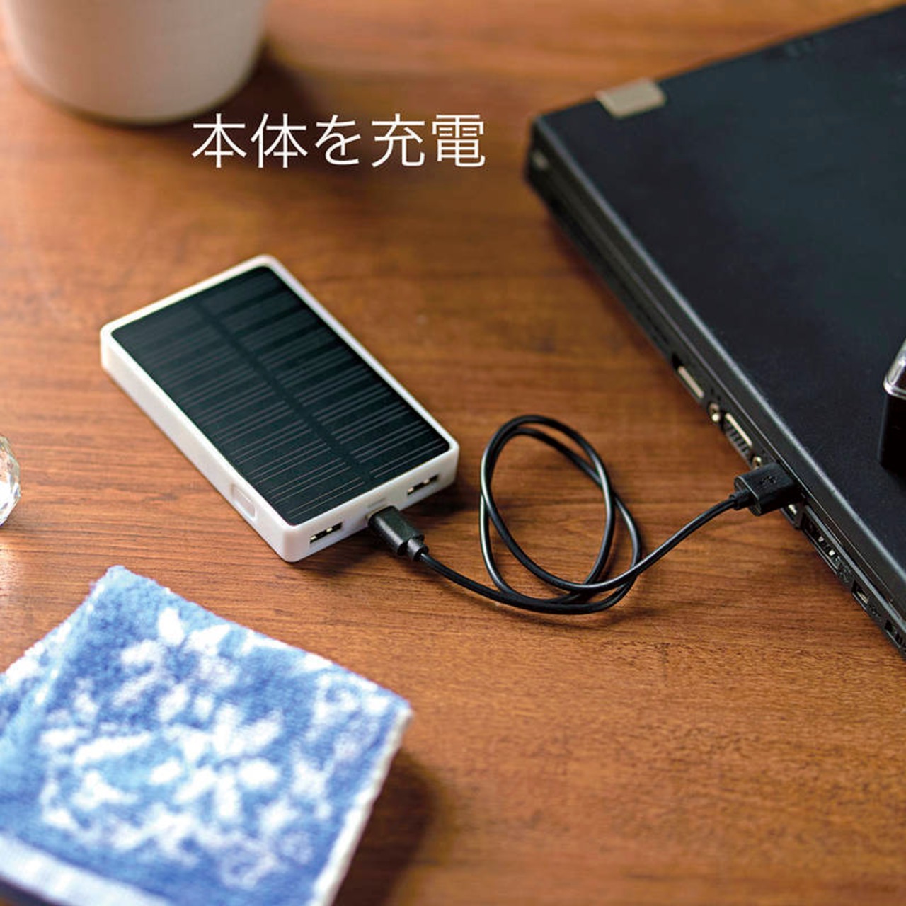 手のひらサイズながら、ソーラーパネル搭載で非常時にも活躍。・2WAY電源:USB・ソーラー・PSE認証品・入力:5V・3A(Type-C)/5V・2A(MicroB)・出力:5V・3A(Type-A2口/Type-C共に)