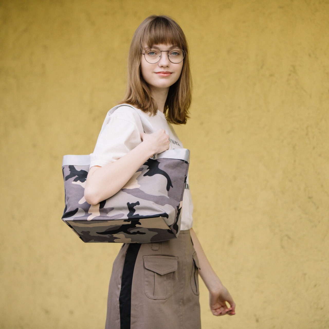 人気商品 【COOCO】テープハンドル迷彩柄トート COOCO