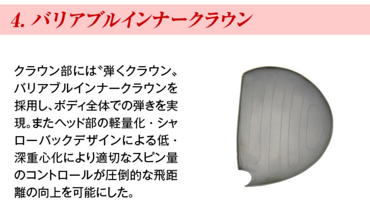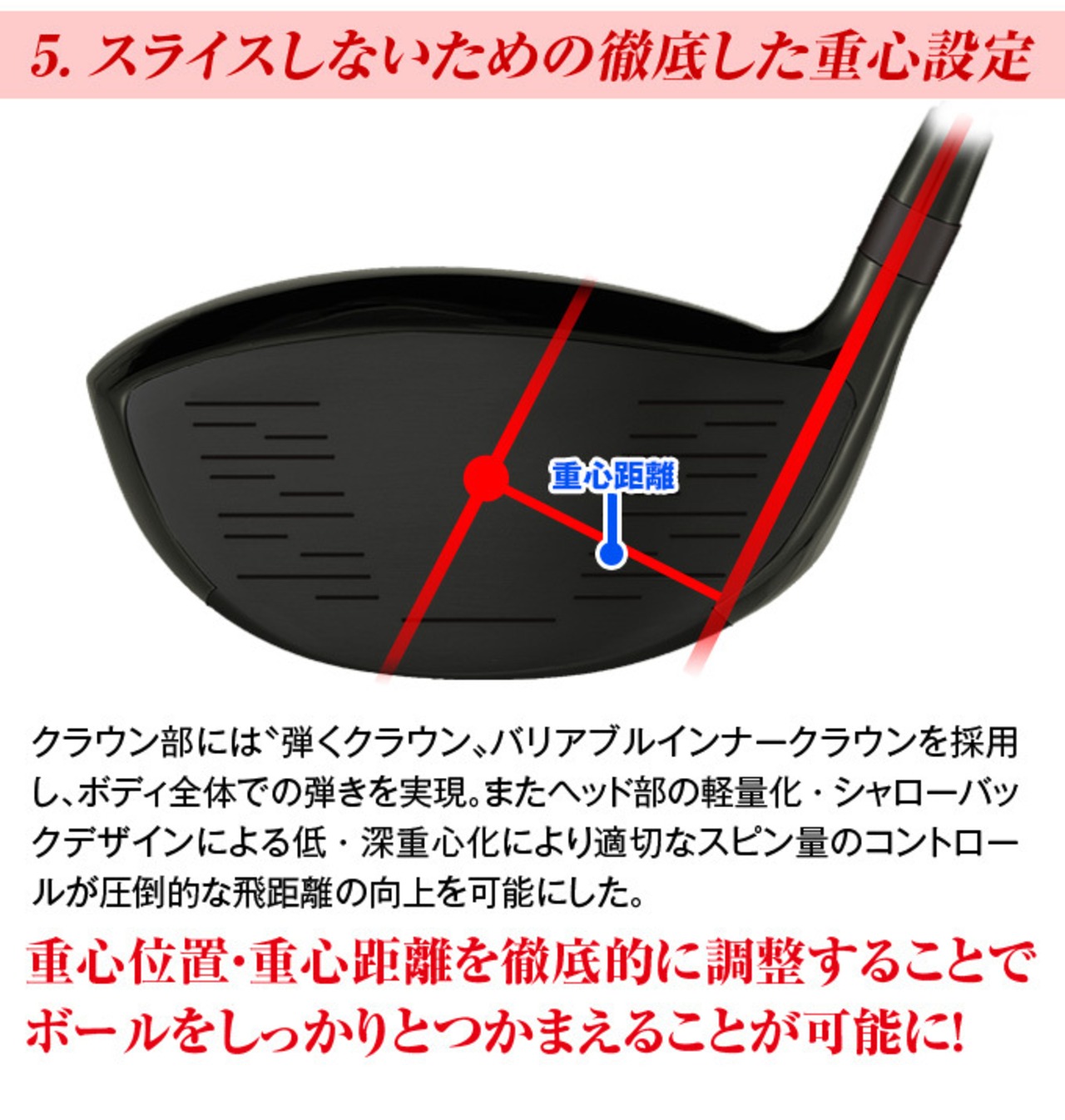 広大なスイートエリアでやさしい大型ヘッドと、製造段階から適合ギリギリのフェースに設定し、さらに高反発加工を施した状態の純正新品ヘッドなので、後加工品と違ってバラつきのない高い純正品質のまま、実際打っていけば反発係数がさらに上がって規制値をはるかにオーバーし、言わば「最初から高反発加工」が施されている「適合を超えた適合」激飛びドライバーなので高反発状態の飛びを周囲を気にせず堪能することができます。