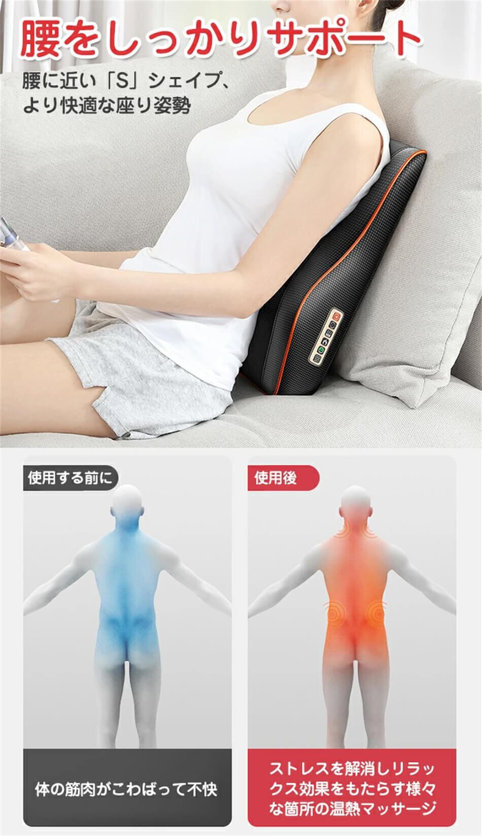 多機能マサージ枕 マッサージ枕 マッサージ 整体枕 背もたれ 首マッサージャー