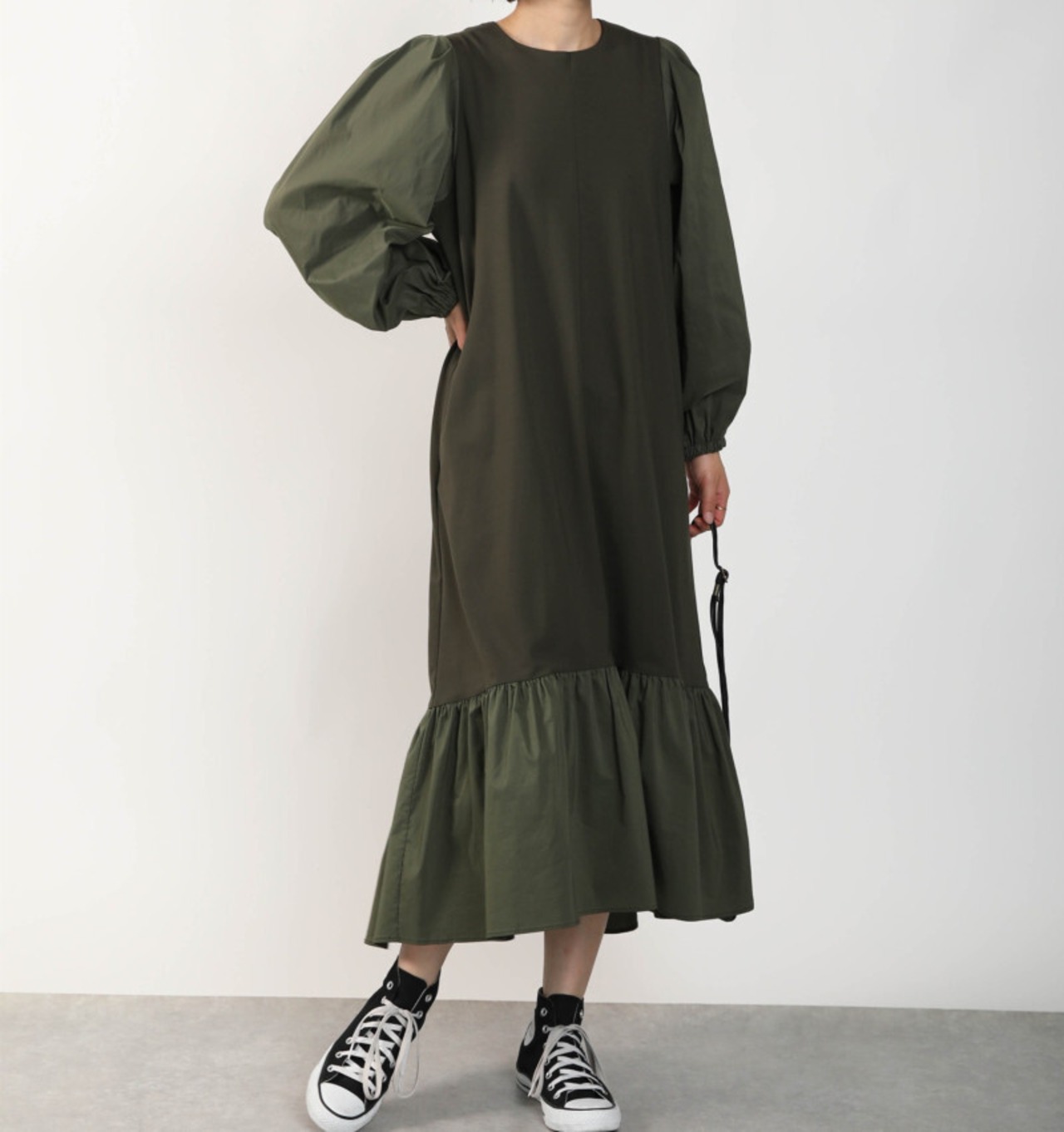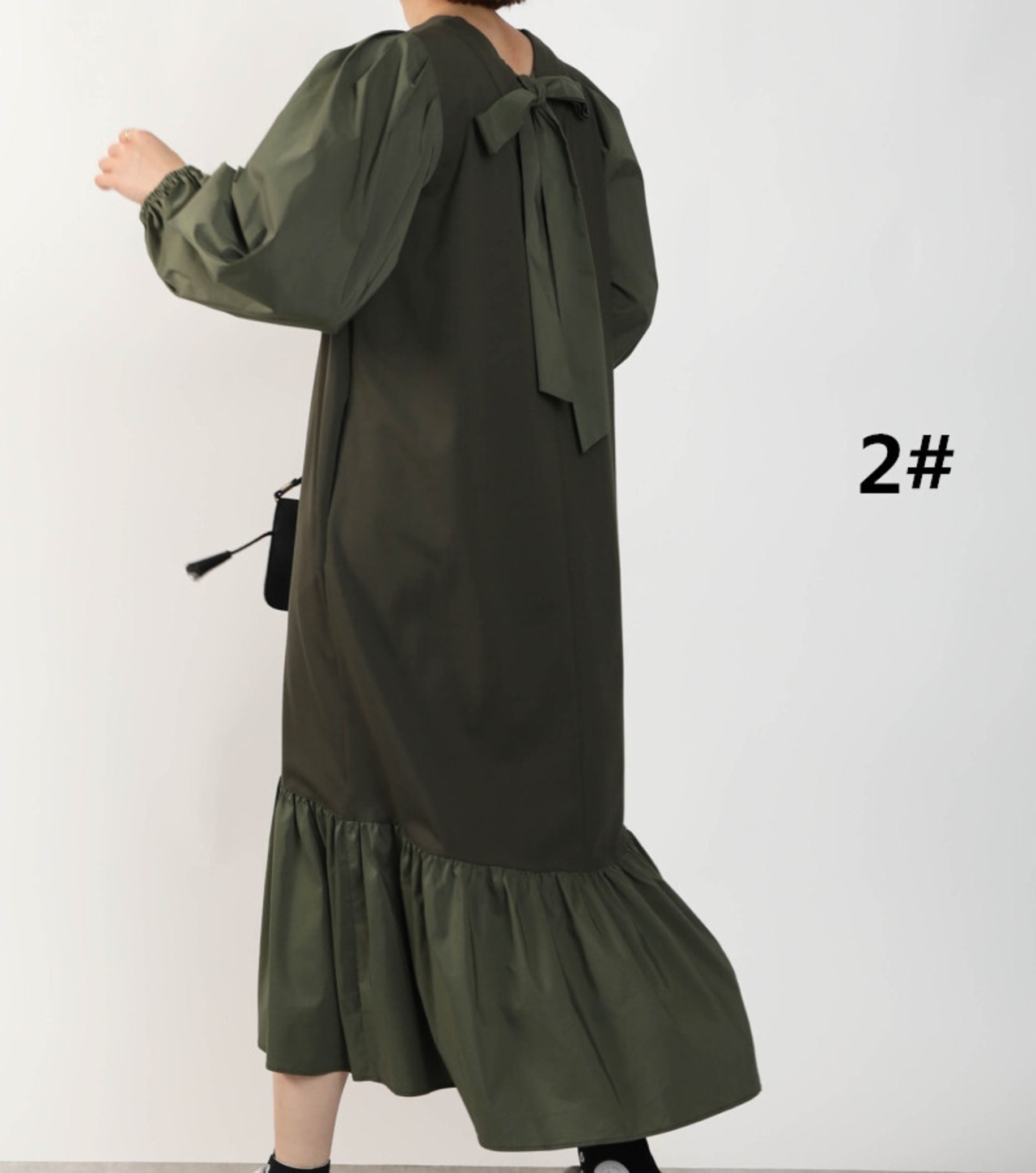 楽天人気 ワンピース バックリボン 秋新作 ラウンドネック ロング丈 レディース スタイリッシュ