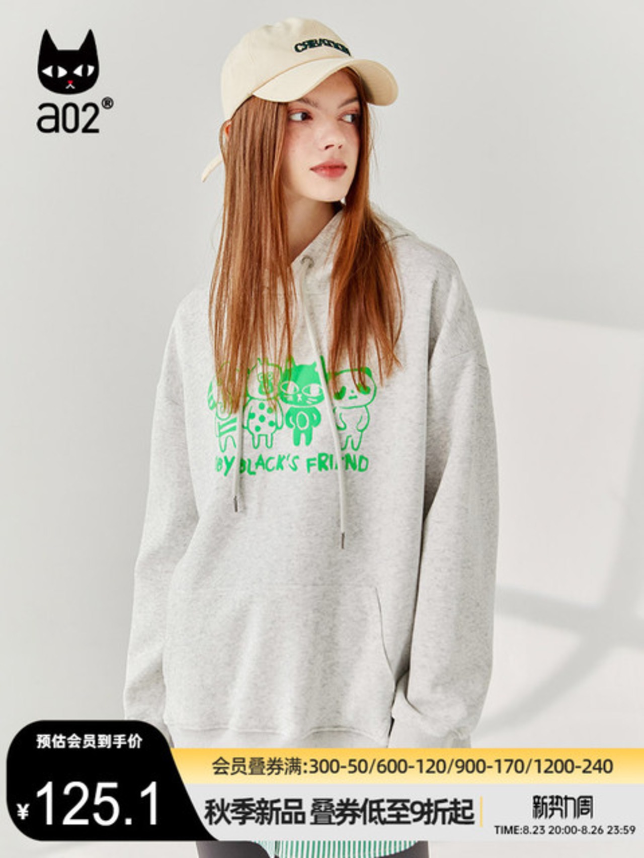 a 02ファッション通勤風連帽衛衣女2023秋新品ゆったりプリント衛衣百合ベーシック衛衣