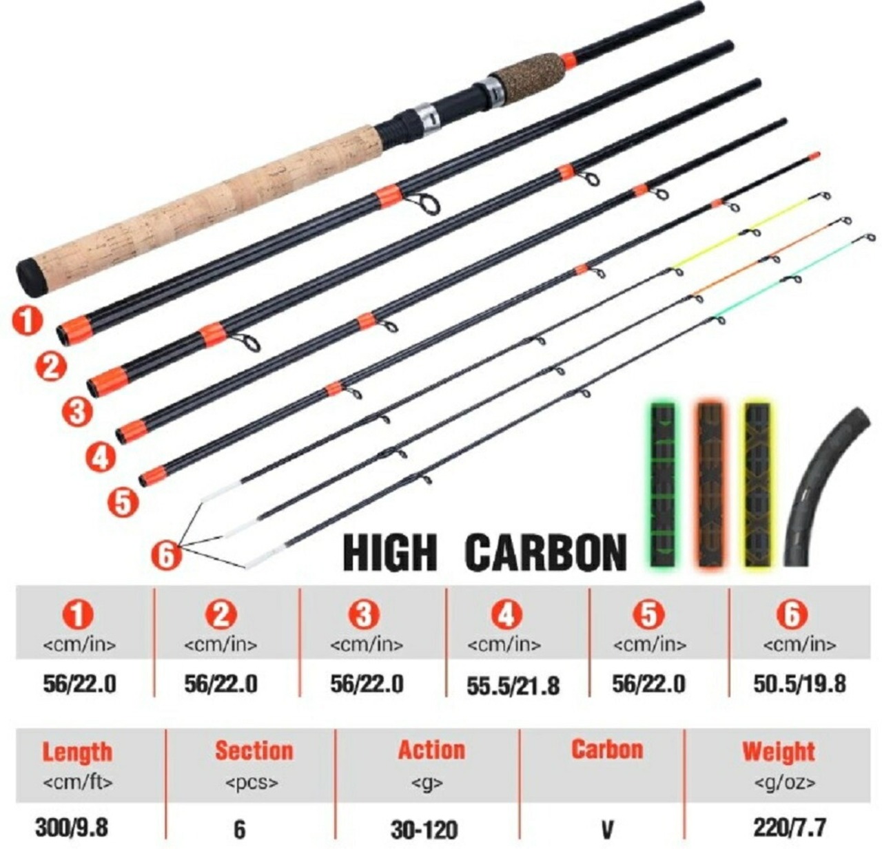 6ピース コルクロッド トラベルロッド 3メートル スピニングロッド