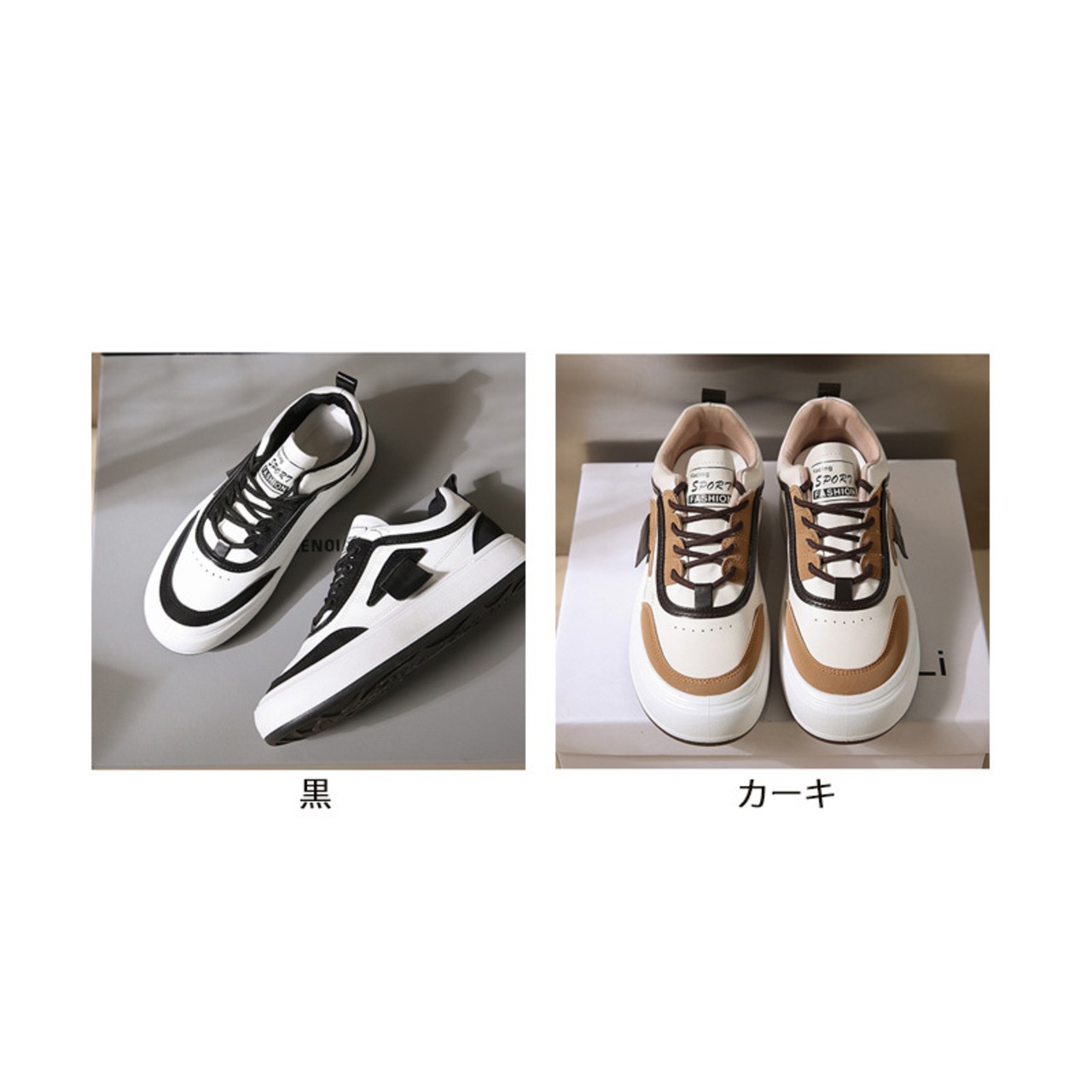 2023新作 レディース ベーシック スニーカー 紐靴 シューズ スタイルアップ 黒 カーキ 4.5cmソール