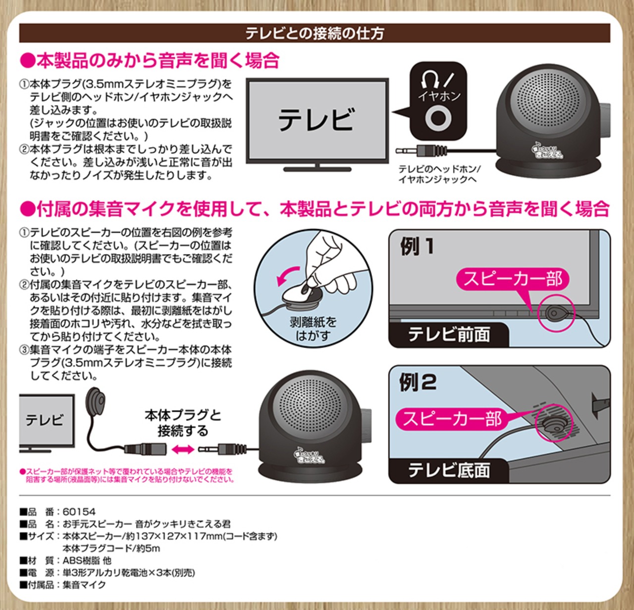 マイクをテレビのスピーカー部に張り付けてるだけでテレビ・手元のスピーカーの両方から音声が出ます!