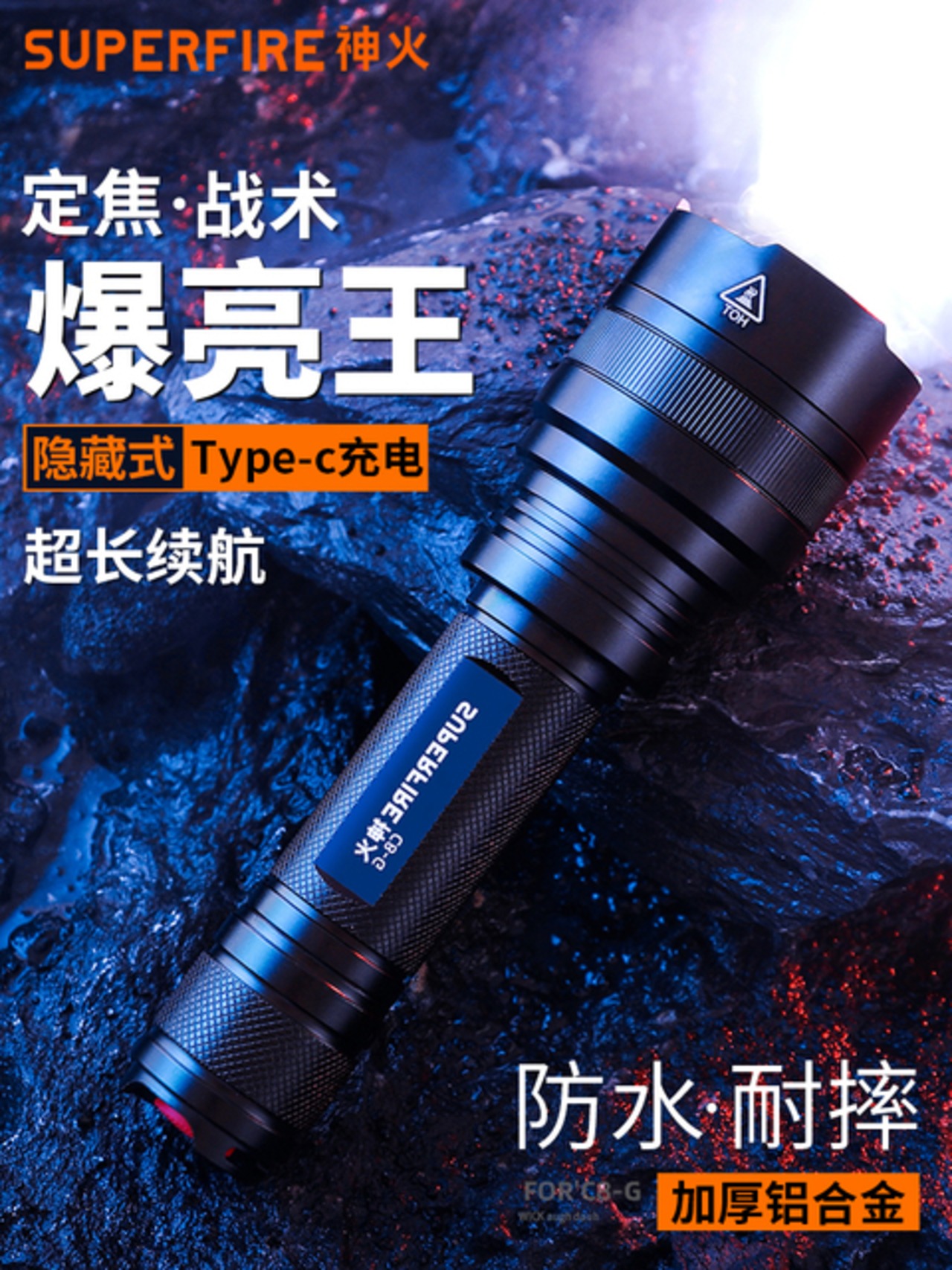 supfire神火公式旗艦C 8強光懐中電灯充電可能超明るい屋外遠射家庭用小便携帯
