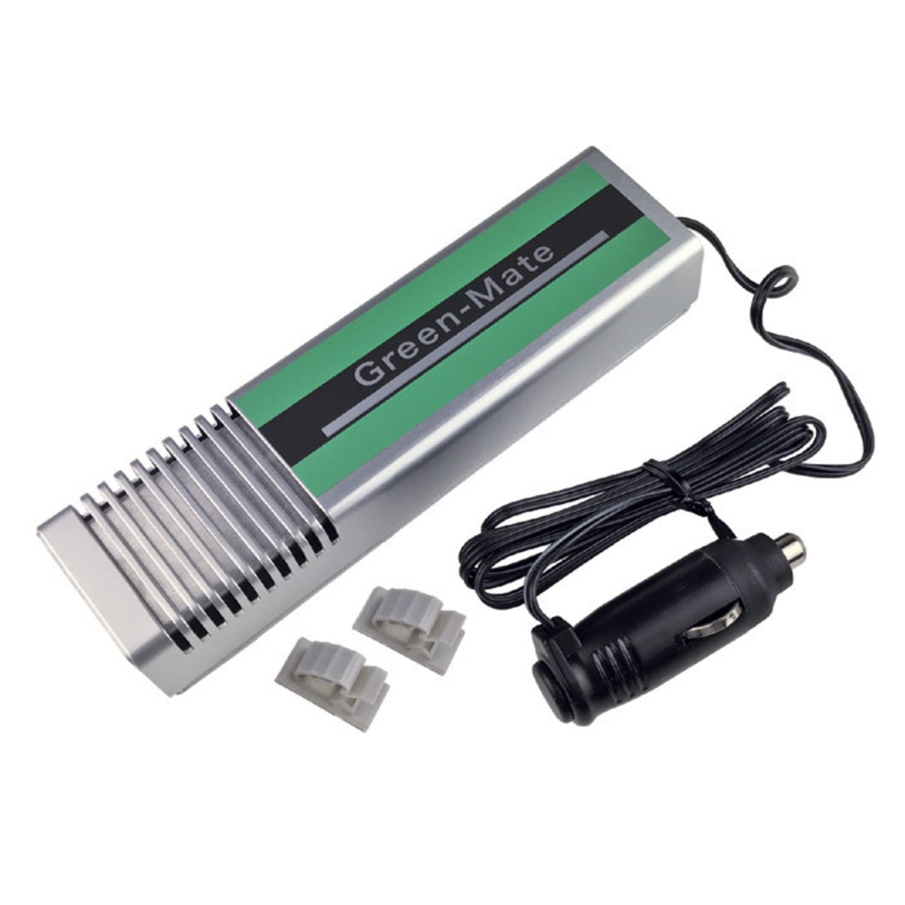 業務用として誕生した空気除菌脱臭器「グリーンメイト」が自動車などに車載できる専用形状になりました。純粋オゾンと紫外線の力で空気中の浮游雑菌やウイルスを除菌・溶菌する、強力な空気除菌・脱臭器です。殺菌後は炭酸ガスと水になるので、人体に害を与える恐れはありません。本来、病院や店舗、ホテルや介護施設などでの使用目的に開発されたものですが、自動車の小空間に適したコンパクトサイズになり、電源も自動車のシガーソケットからの電源供給で作動できます。オススメの設置場所は、助手席足元のエアー吸い込み口付近で、ダクト内部に付着したニオイにも効果があります。12種類もの菌や微生物、それにインフルエンザなどのウイルス菌に対して驚異的な効果(京都府立大及び大阪府立産業技術総合研究所調べ)が認められてます。本体にスイッチは無く、キーONやACC作動時に電源供給と共に作動するようになってます。作動音は無く、UVランプの青白い明りが灯ります。フィルター等のメンテナンスはありませんが、内蔵してある紫外線ランプの耐久時間は連続運転約20000時間(約2年)で、使用状況により交換が必要となります。