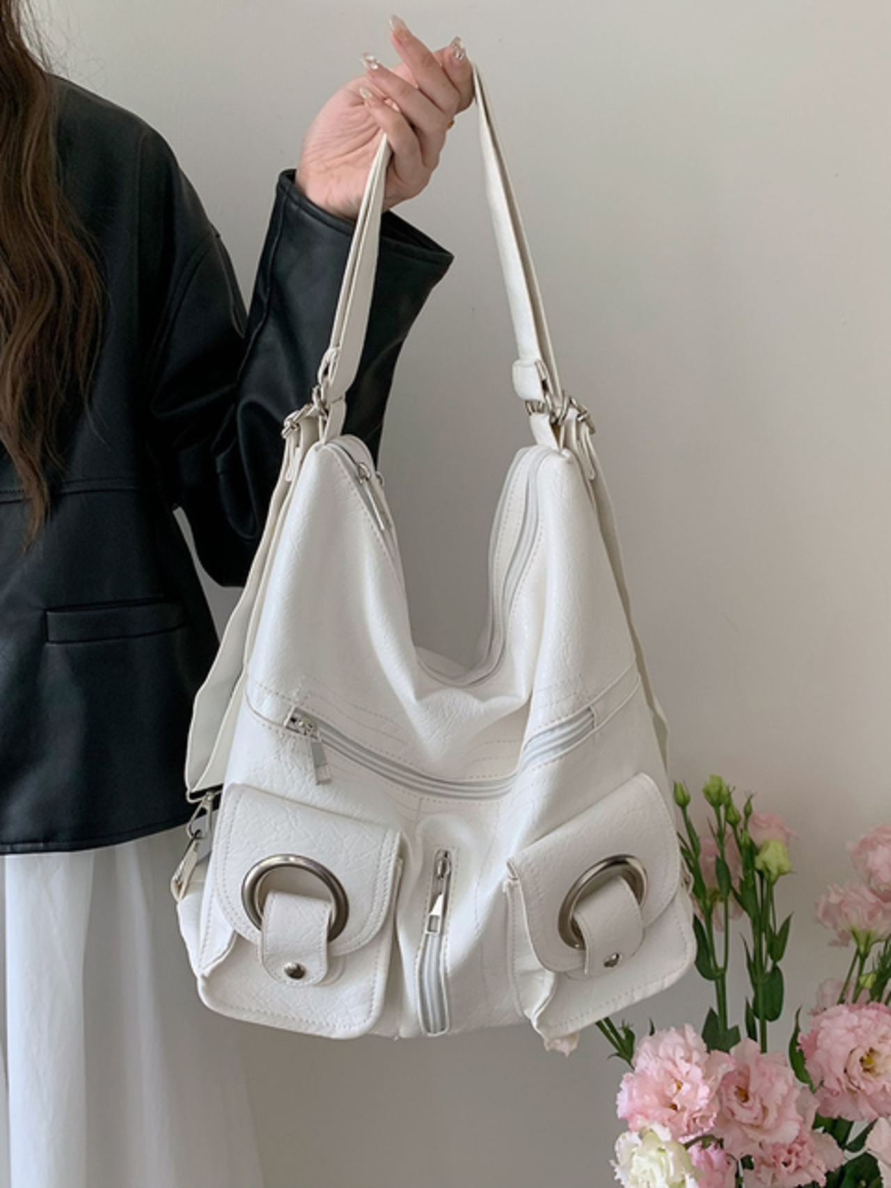 韓国版シンプルで個性的なスタイリッシュなファスナーポケットPUPittバッグショルダーバッグ通勤大容量ショルダーバッグ